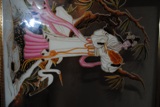 Mirror has black frame with gold trim. Beautiful picture of Japanese woman in pink komono on it. Could someone please give me a value and any information.