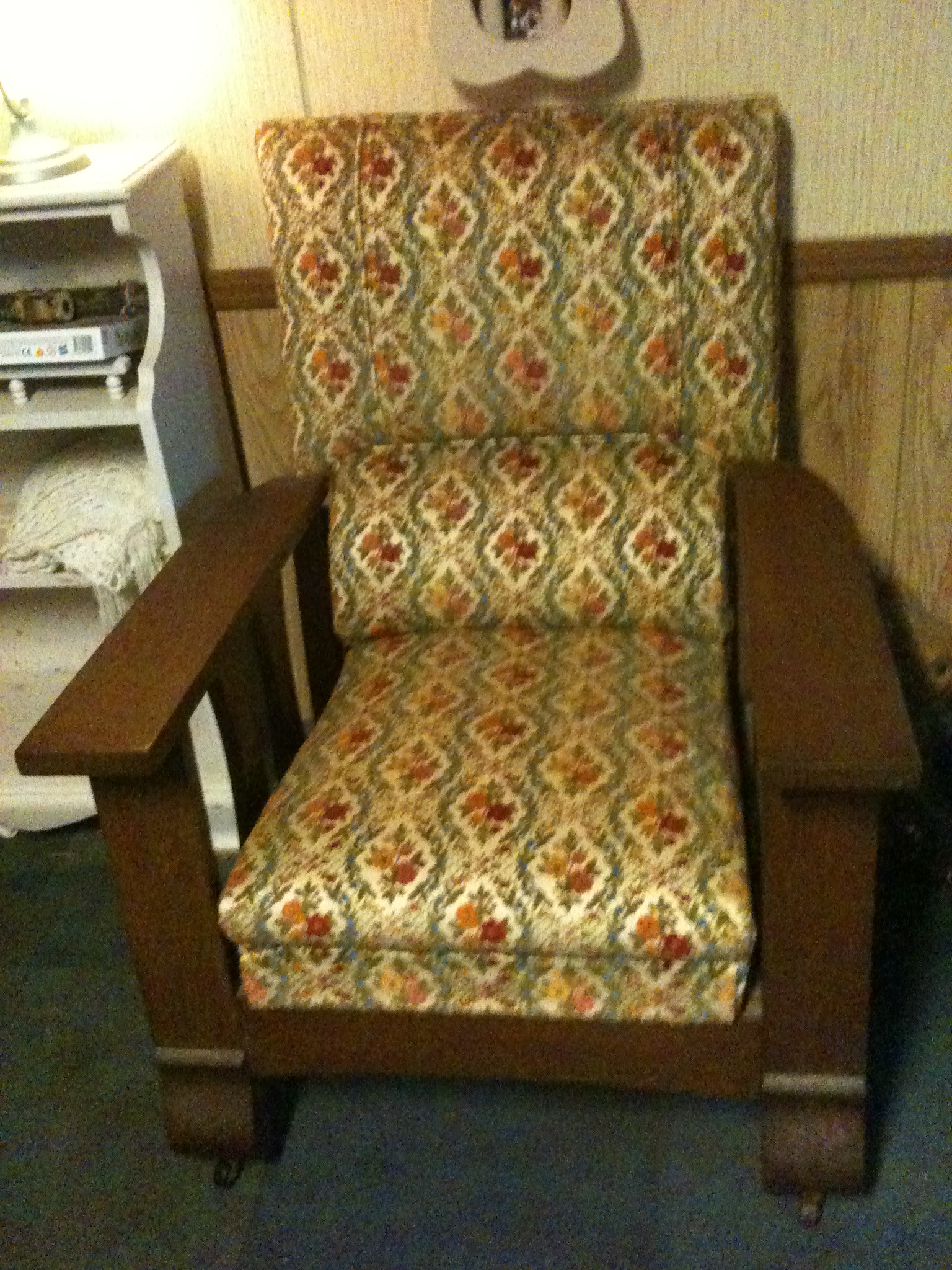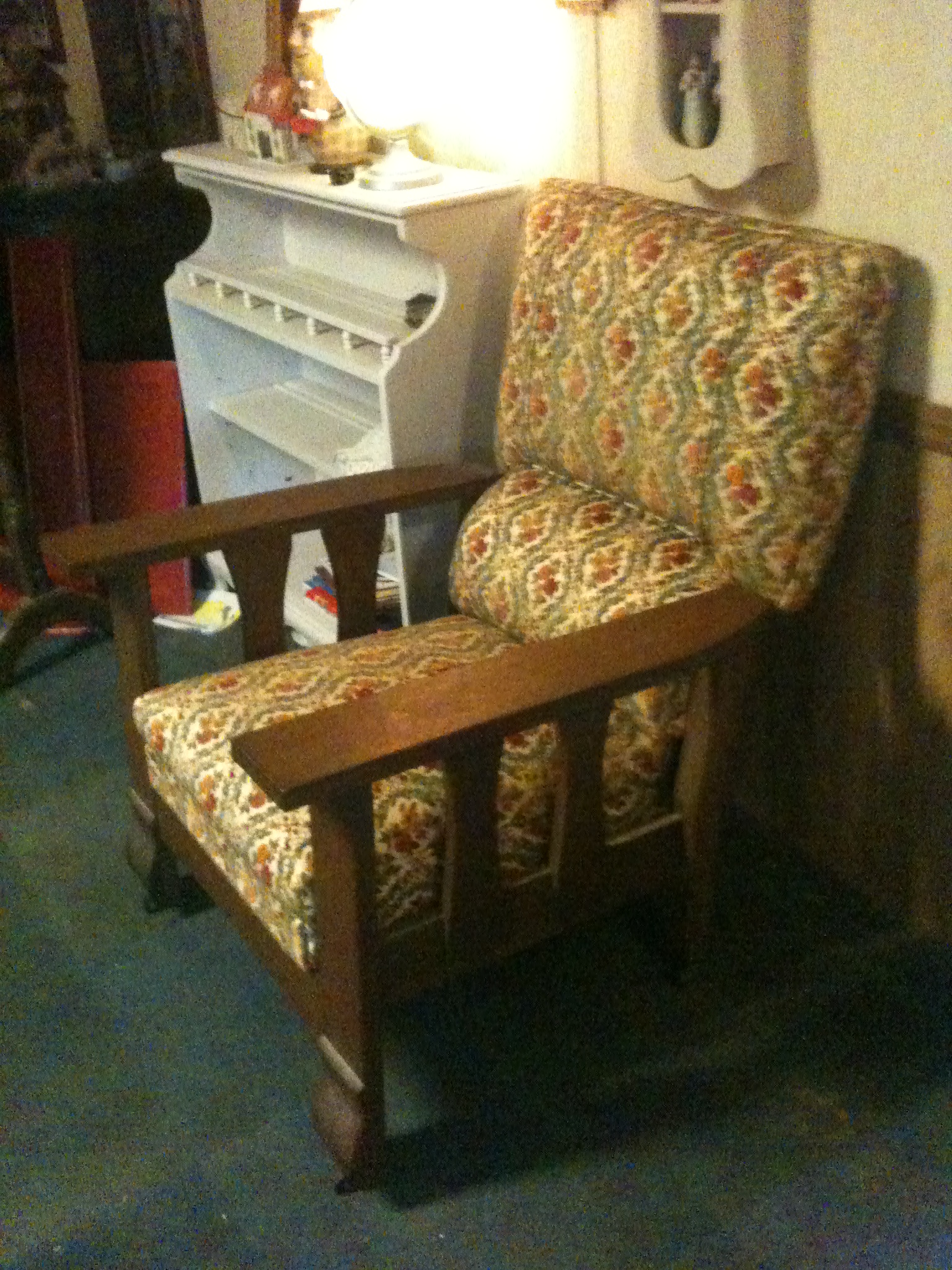 "GRANDPA'S CHAIR" PERHAPS THAT'S WHY IN EXCELLENT CONDITION? HE WAS AN ORPHAN FROM SWEDEN AND THIS CHAIR WAS AN EXTRAVAGANCE LIVING ON THE FARM DURING THE DEPRESSION.