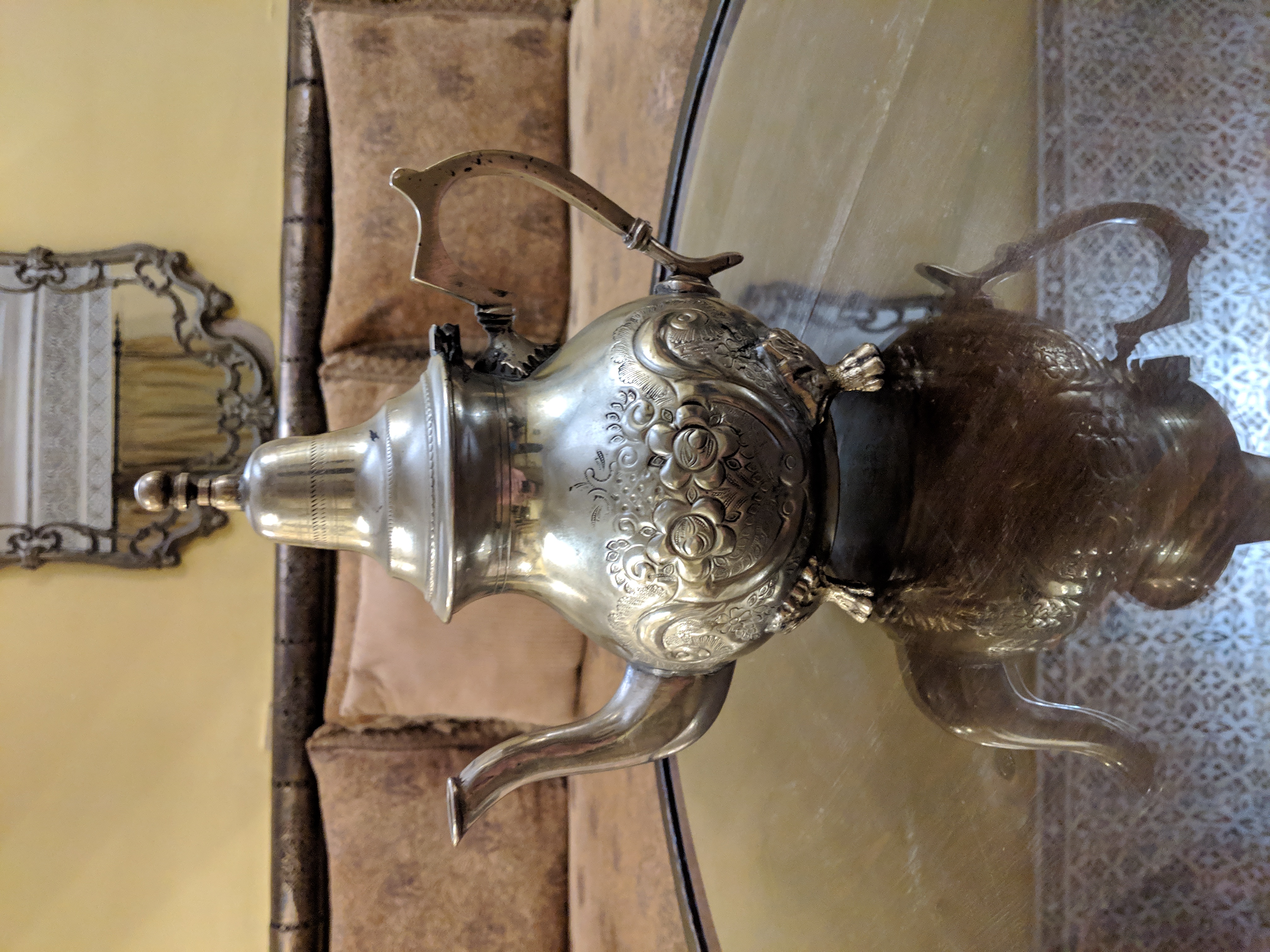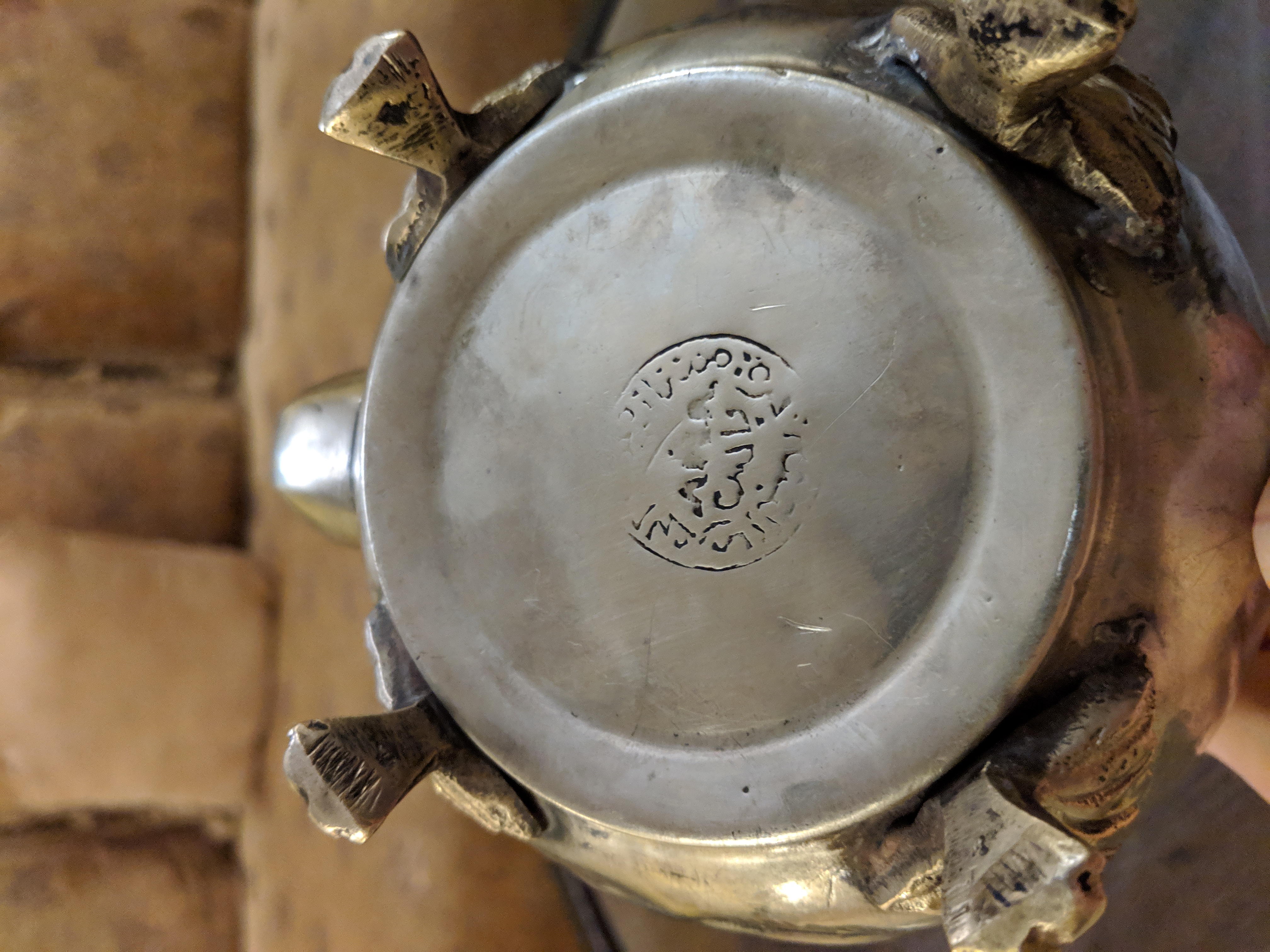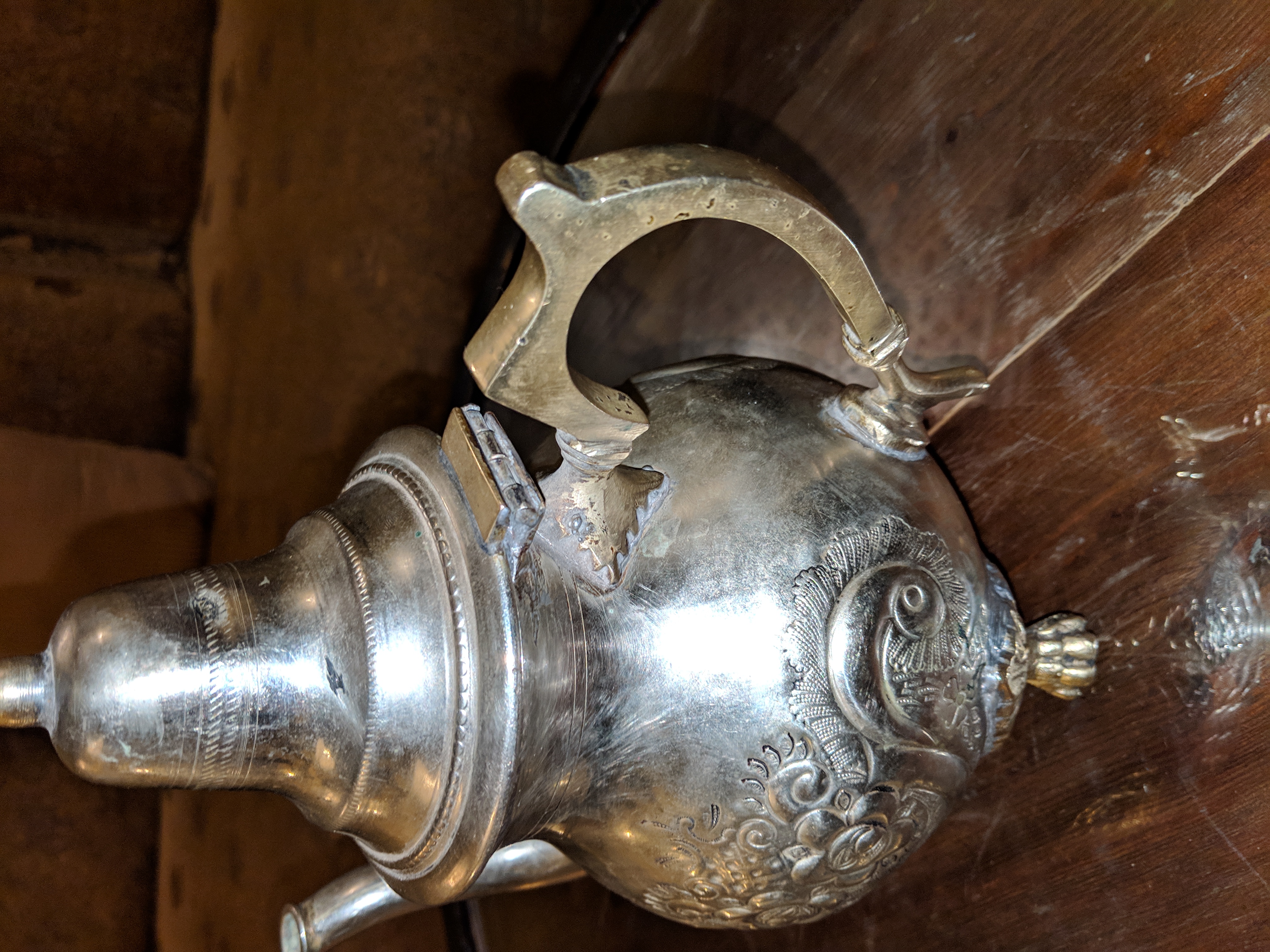 Acquired this seemingly quite old silver teapot, appears to be white metal as base. The stamp on bottom appears to be Jewish maybe? Which would be fairly old in Morocco I'm told? Just wondering what I have here!