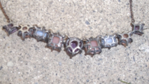 antique necklace..cant find alot of information on this necklace but it has N R or N A marked on the back of the middle stone.