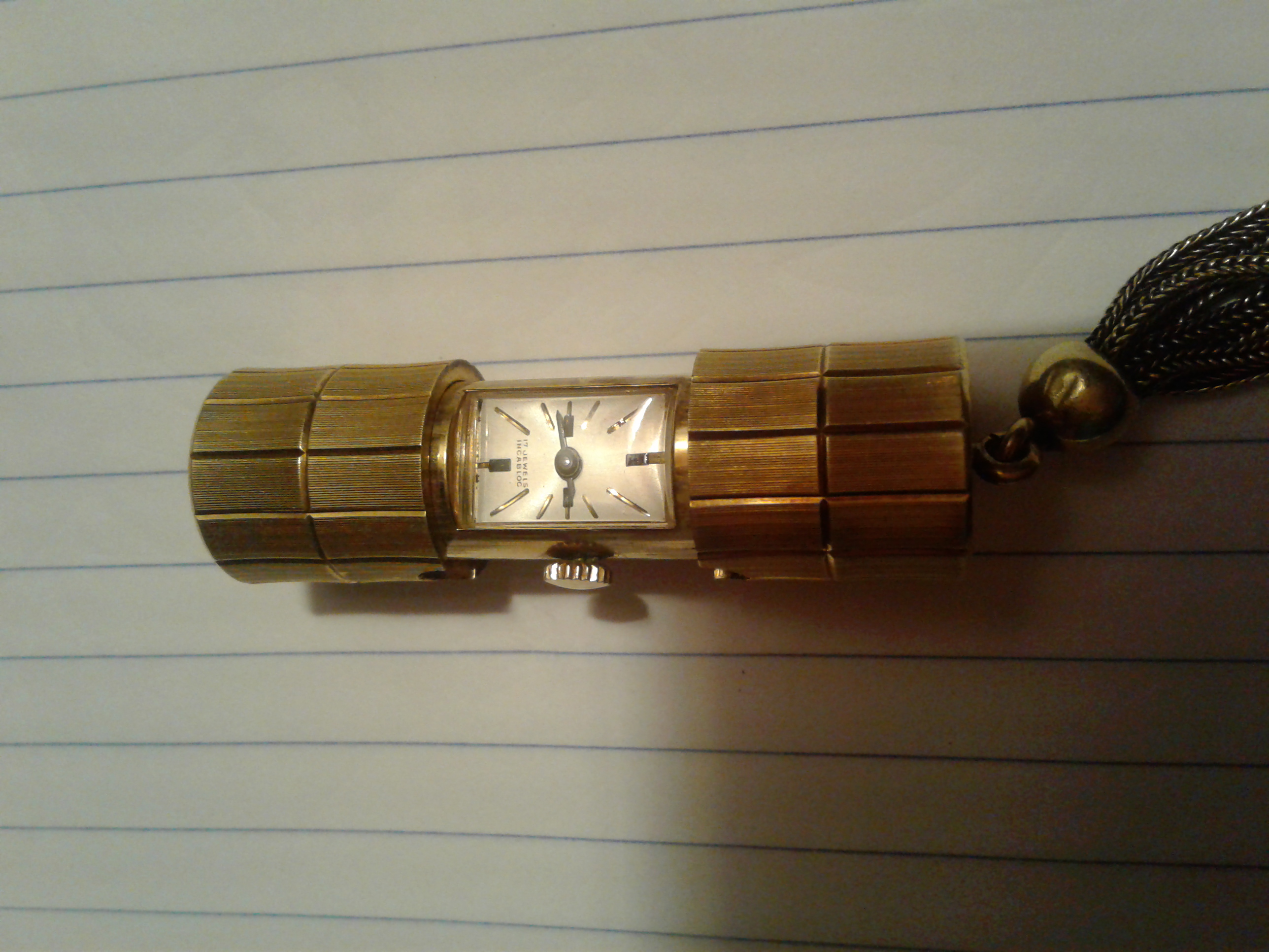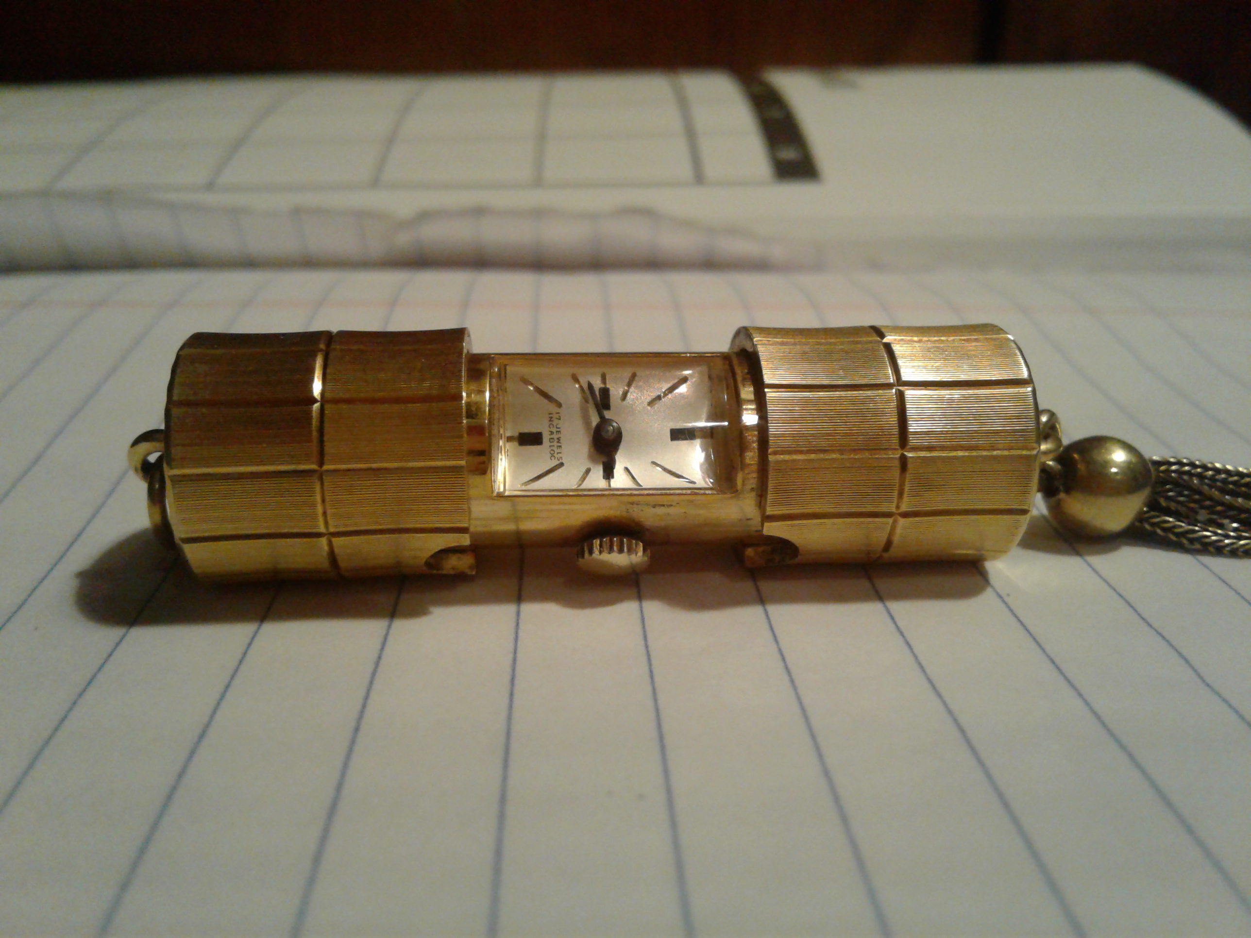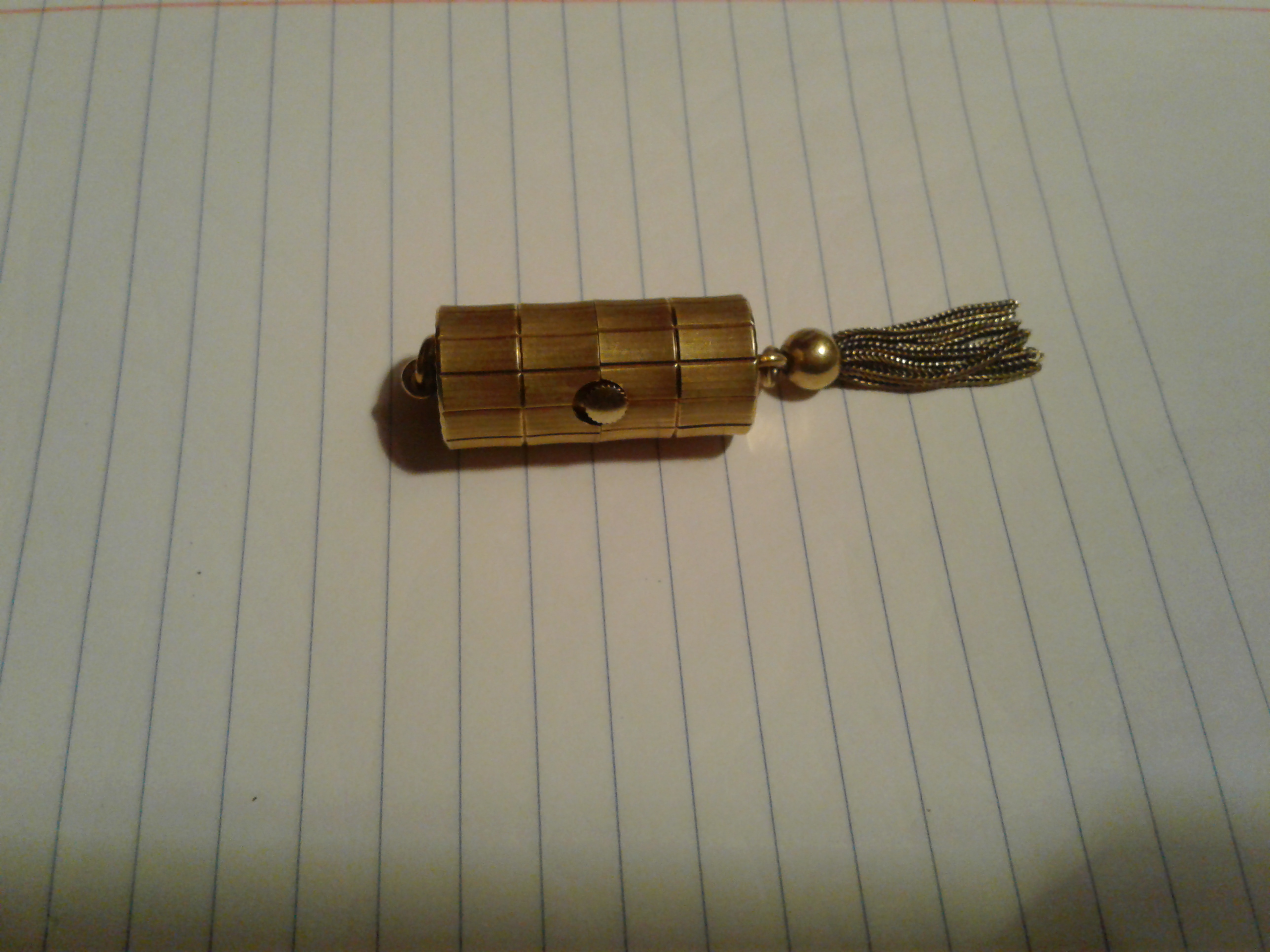 It's very small round you PUSH BUTTON and I opens up and thered a tiny clock inside and it can also be worn as a necklace