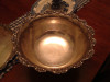 This is a beautiful set and makes a great display. It is about 100 years old. The reason I labled it as "good" condition is because there are some problems with the finish in spots. The tray has a thin line of corrosion around the bottom inside rim and some spots on a 5 or six inch area on the outside rim also. Almost all of the cups have several thin cracks in the finish. It is hard to get them to show up in the pictures because the cracks are so fine. I filled up one of the cups with water and let it set. There was no leaking. Most of the cups have tarnish spots inside them that need to be cleaned. The punch bowl has no major issues. It just has some scratches from normal wear and tear. Even with the problems, it still makes a beautiful display. I do not have the original ladle, but I will include the 1847 Rogers Brothers Continental Silverplate ladle that is in the picture. I think it is a soup ladle, but it fits.