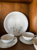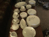 It is a 12 sitting service. It has 12 dinner plates, 12 salad plates, 12 soup bowls, 12 bread & butter plates, 12 fruit and dessert bowls, 1 gravy boat, 1 sugar bowl, 1 cream server, 1 turkey platter, 1 medium platter, 1 lg oval serving dish, 1 round lg. serving dish, unfortunately there are 8 cups and 10 cup saucers. That makes it a little shy of a full service, but it is in MINT CONDITION!