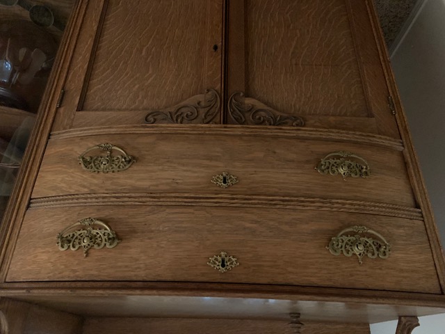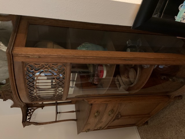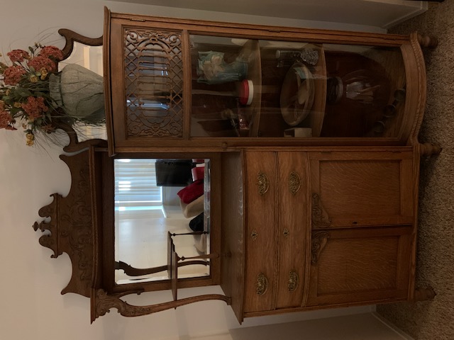 I am interested in having this china hutch appraised. If I remember correctly the back of one of the mirrors is dated 1898 or 1889. It is oak and has all the original brass hardware.  The poured glass on the door and the 2 mirrors are also original. It is in great shape other than the missing piece in the lattice work that sits on the glass door.  This belonged to my father's parents.  I am afraid I don't have much more information and all of the family that might know something is deceased.  If you have any questions please feel to ask.