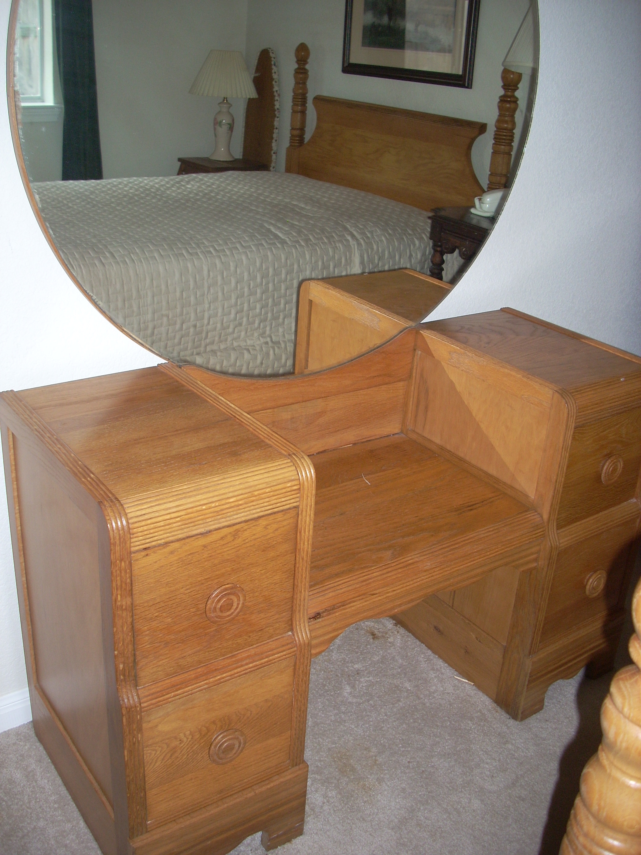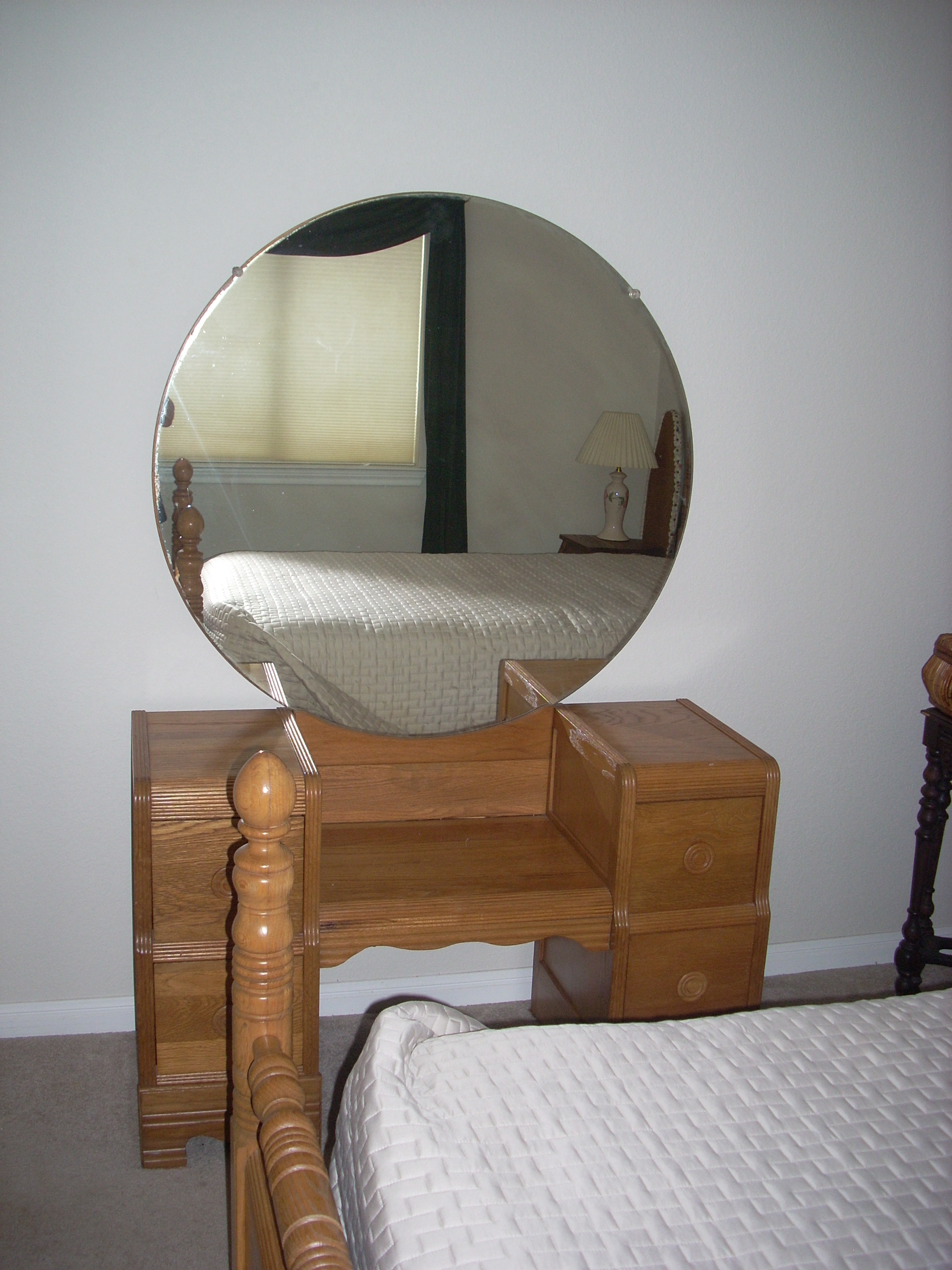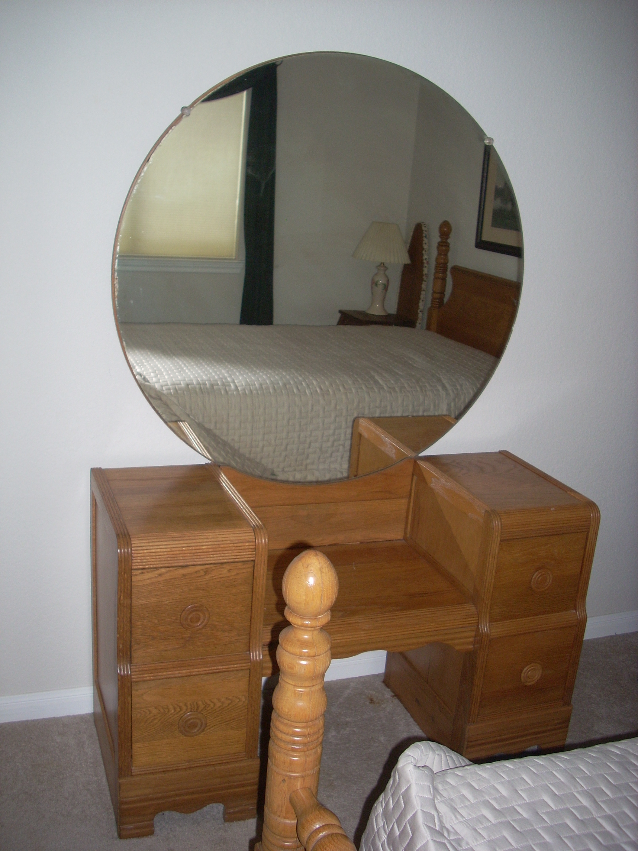 Dressing table with 4 drawers. round Mirror is original as far as I know. Drawers are dove-tailed.
