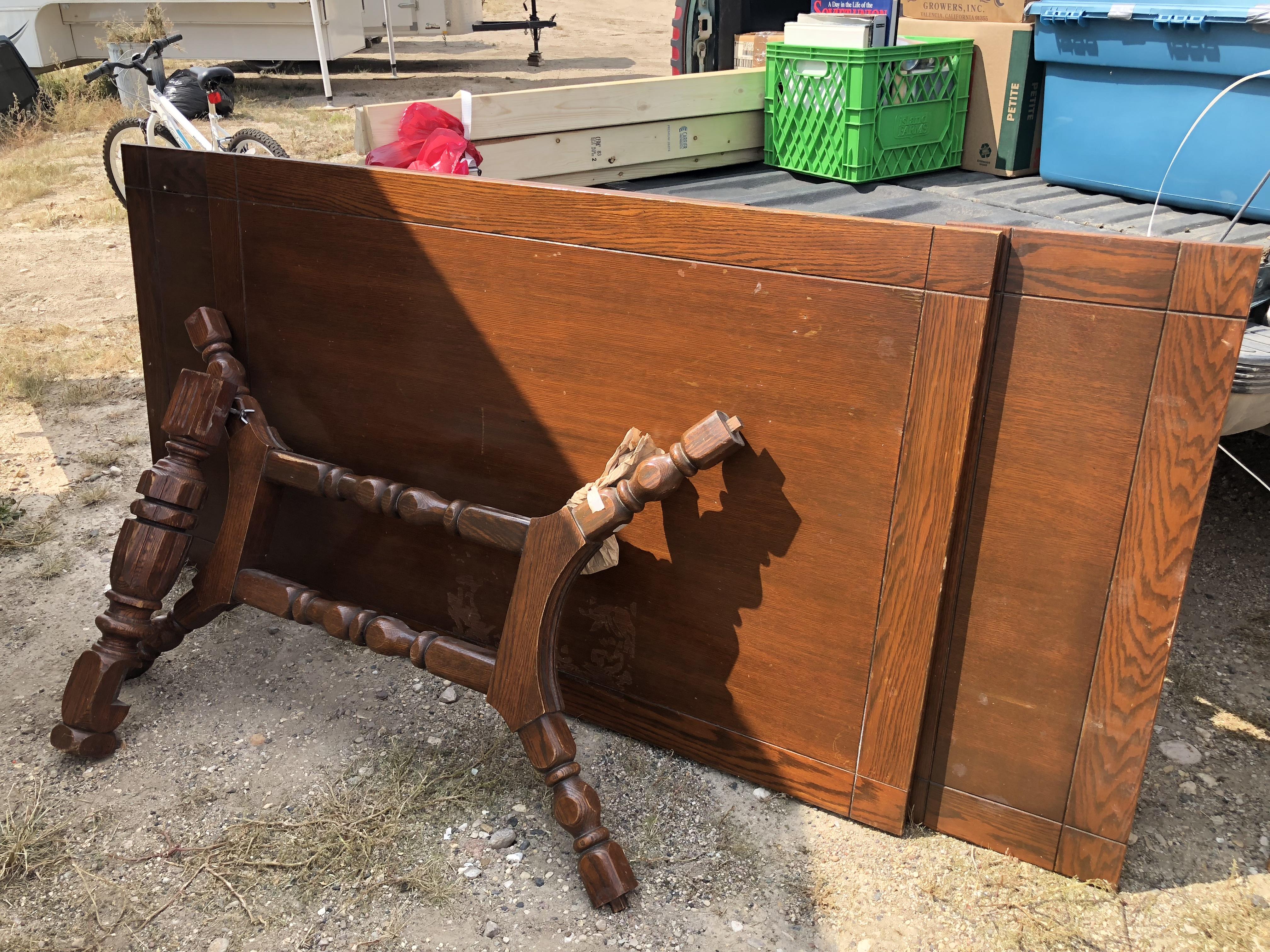 The table has been disassembled for storage. All of the legs and supports are not shown in the photos, but are in good condition.