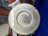 The red satin glass is original (according tot he seller) and is in excellent condition with no damage, just some roughness around the rim edges.