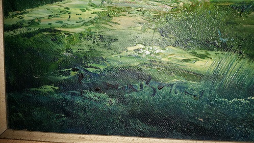 26"x50" Oil Painting unkown age, I received it about 20 yrs ago from a couple who got it from his parents as a wedding gift in the 1940's, I cannot make out the signiture