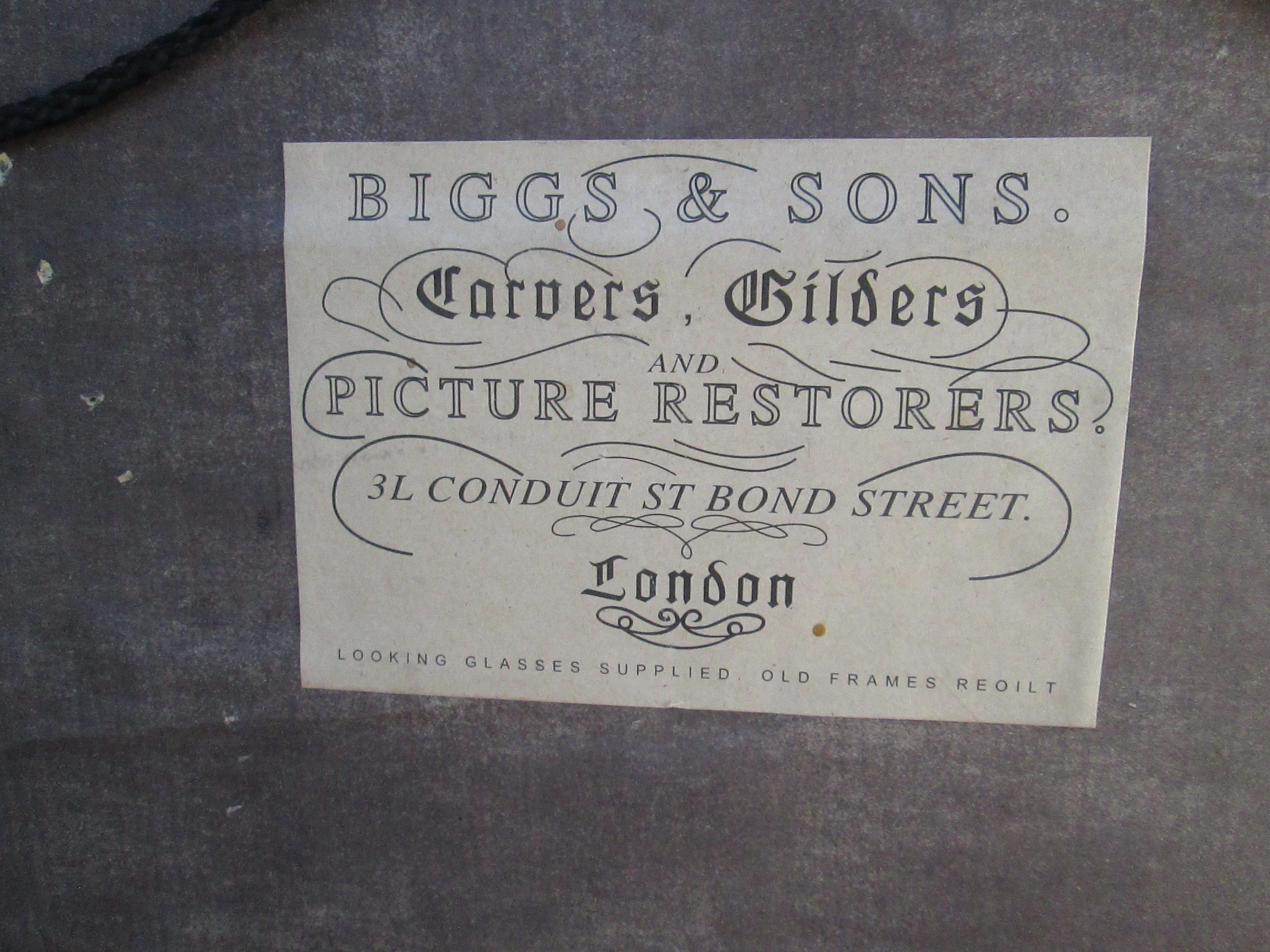 The Painting has been Restored by Biggs Restoration, England,(date?)