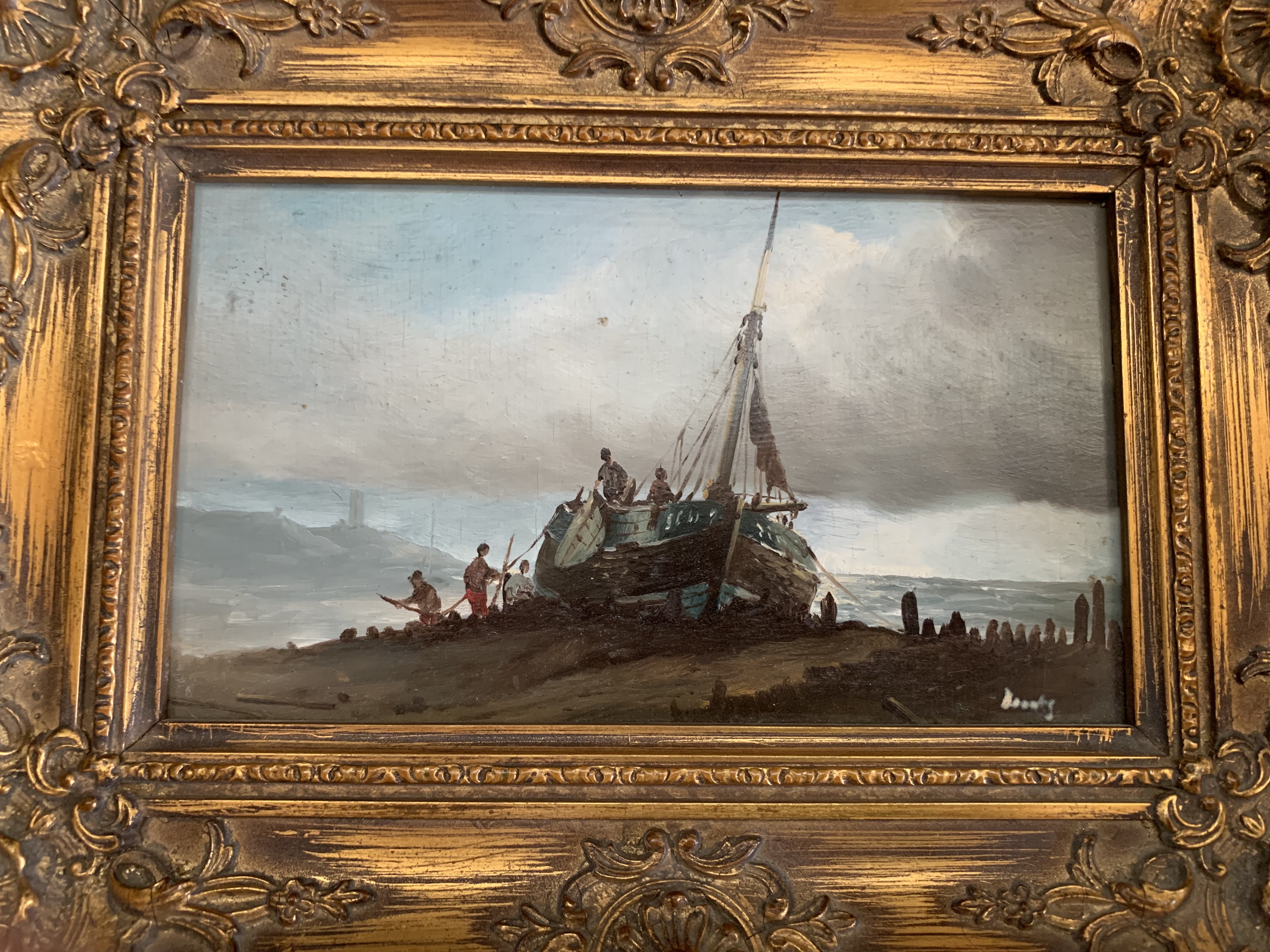 I found this beautiful antique oil painting at an art collectors estate sale. I would love to know more about it, but can’t make out the signature.