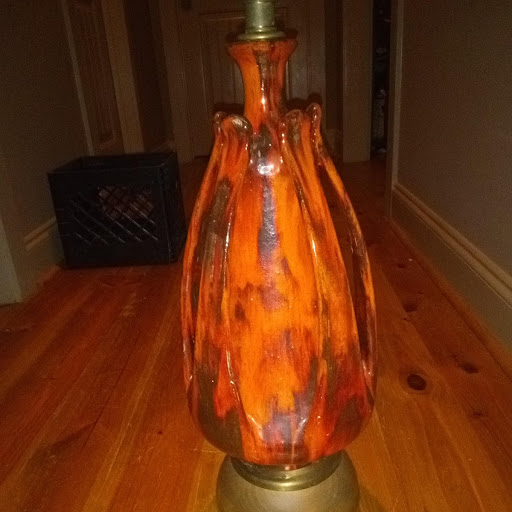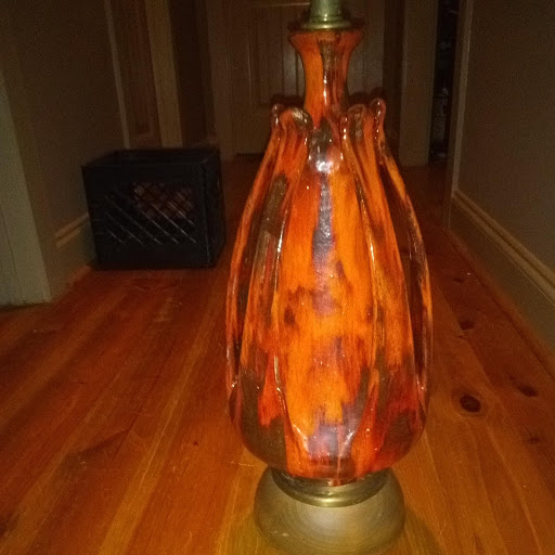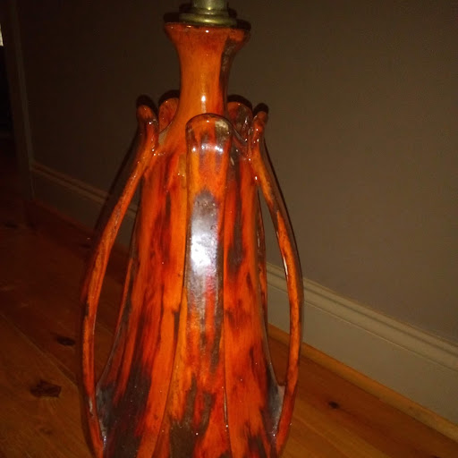 My grandfather gave me this lamp and I can't find any mark or name on it. It has a woven linen shade. It seems to be hand painted and also to made out of ceramic material.