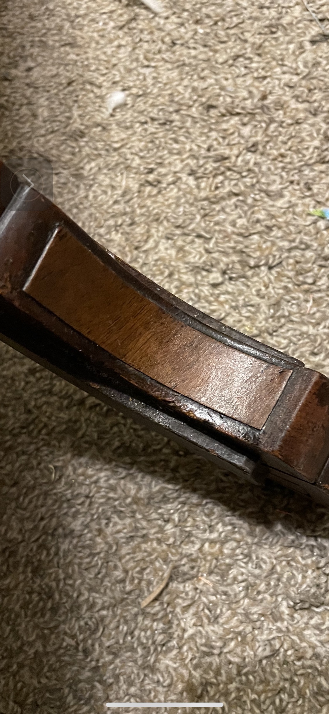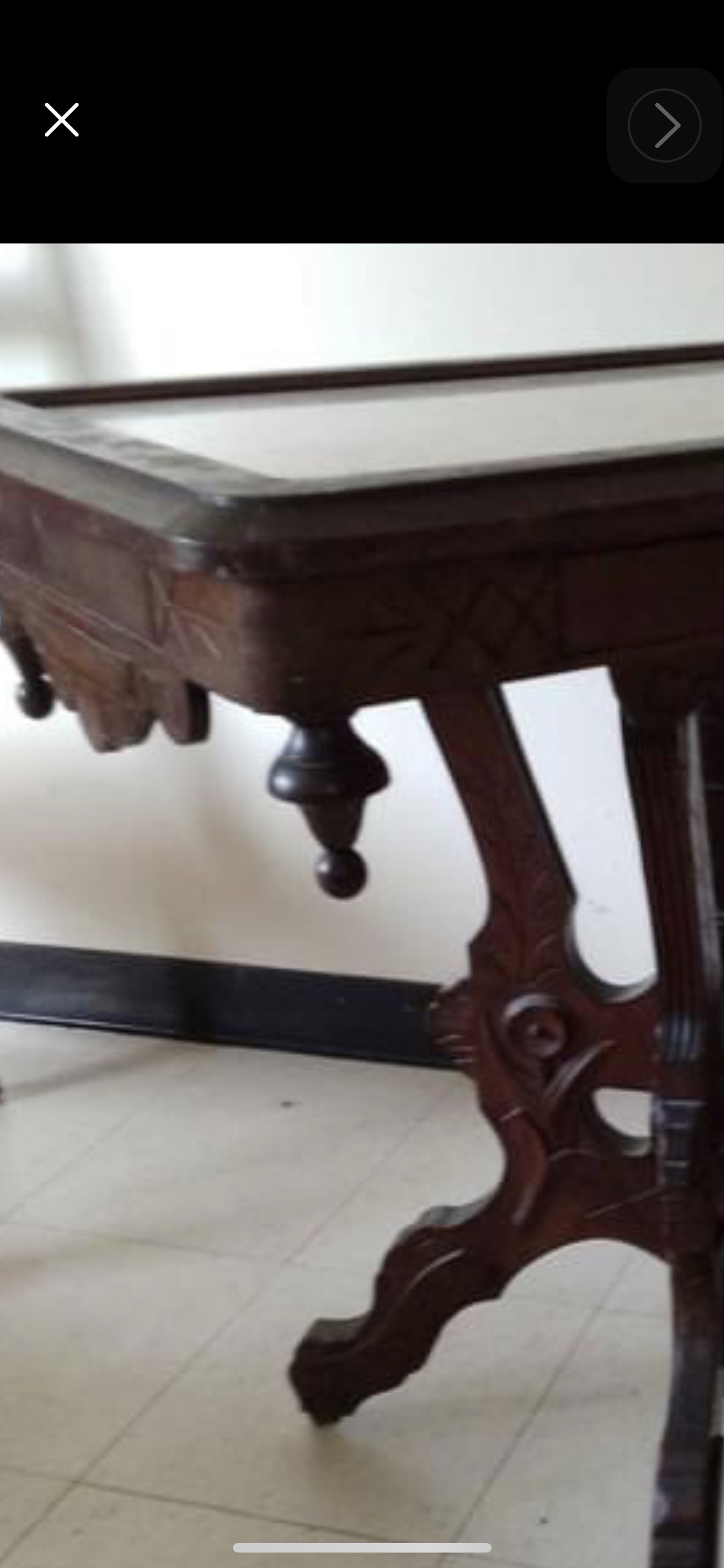 I purchased this table a couple days ago and it was listed as old but not vintage, when I started taking it apart to clean it seem to me that this table is not vintage but antique. Any feedback would be greatly appreciate. It has a marble top and looks to possibly be walnut with burl wood inlays.