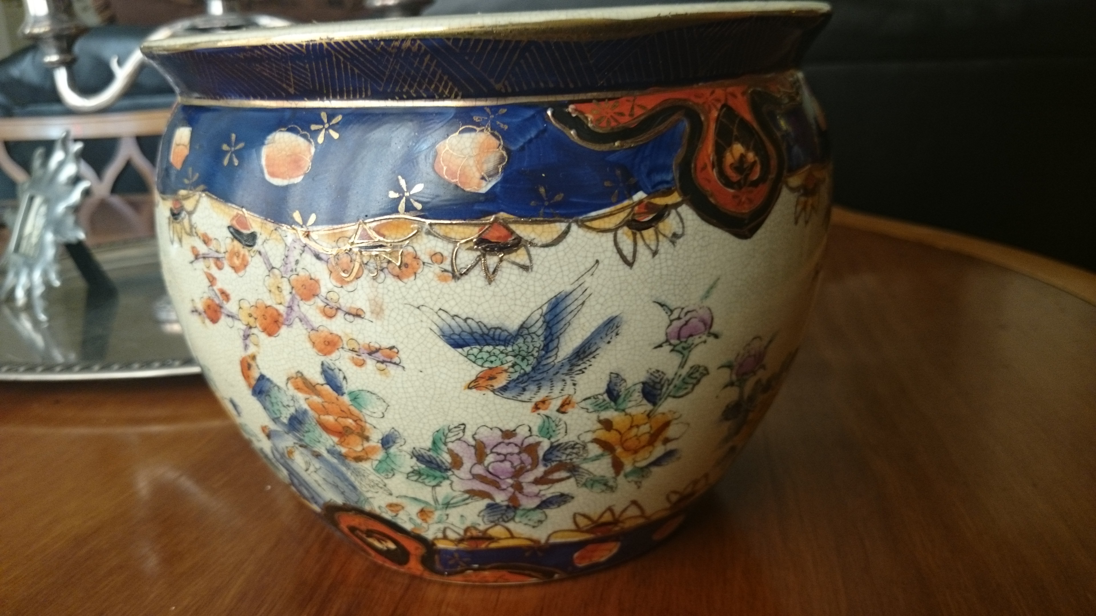 Planter with gold trim, never been used. Grandmother bought at auction in the 80's.