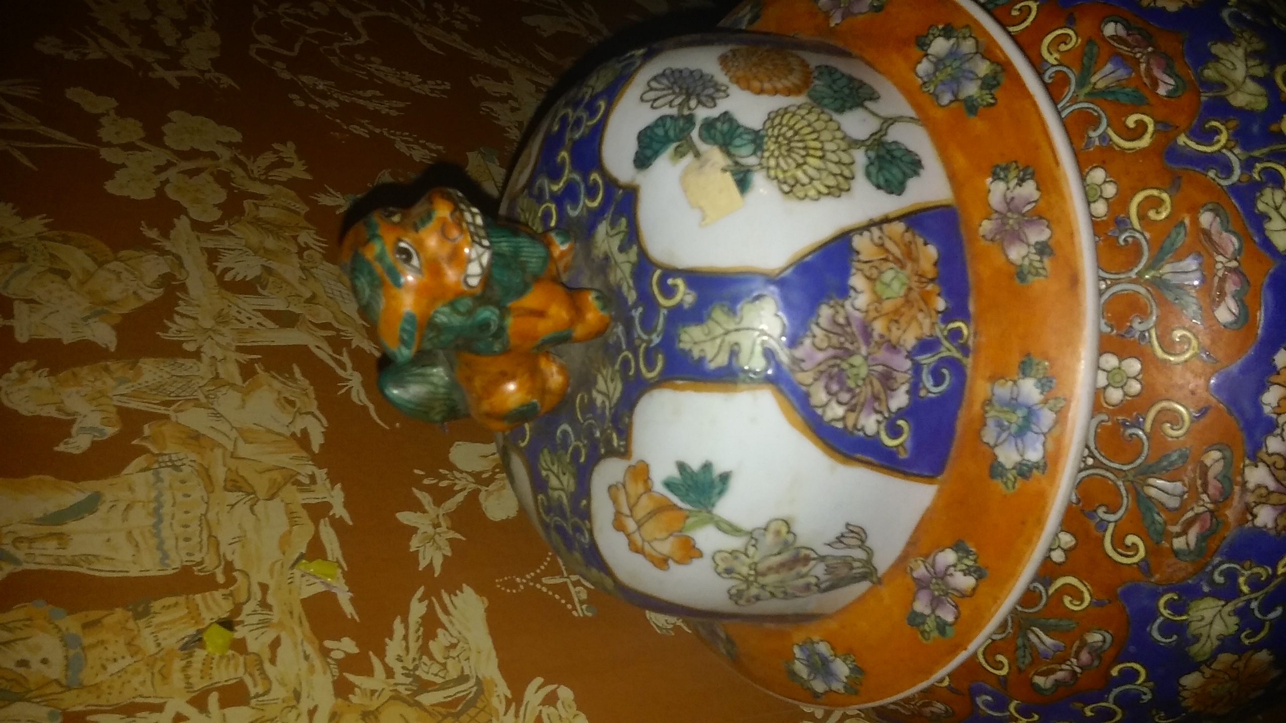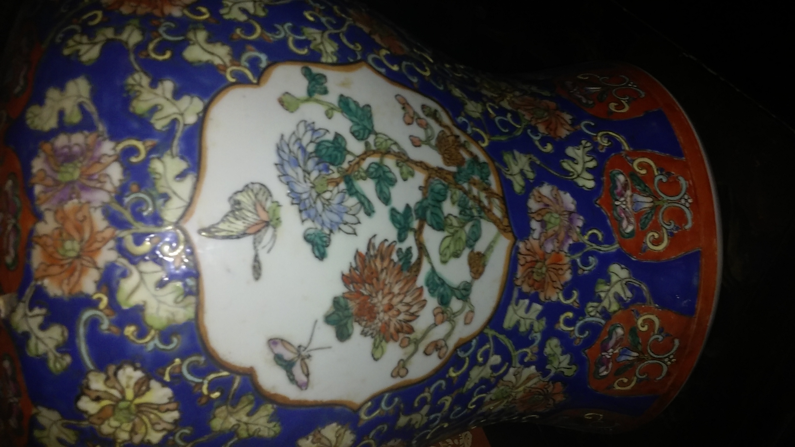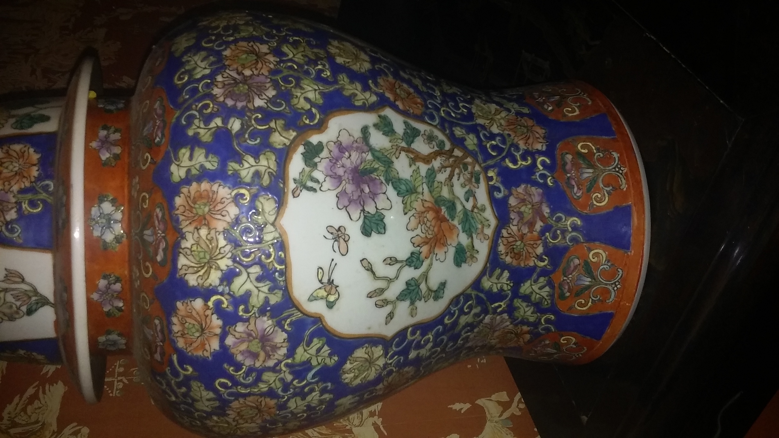 I have a matching set of urns that I cannot find much info on. It is about 13 inches tall without the lid, 10 inches diameter at the widest point and 6 inches diameter across the opening. Not really sure how to go about identifying it at all. Any help would be appreciated.