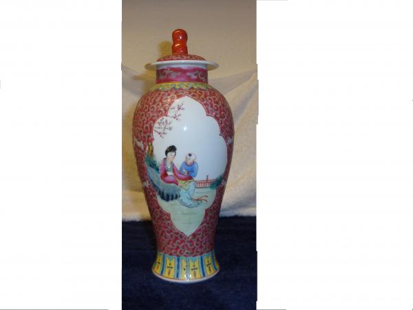 This is like a ginger jar - the detail is increditable - the top of the jar (which comes off) has what looks like a cat or dog.