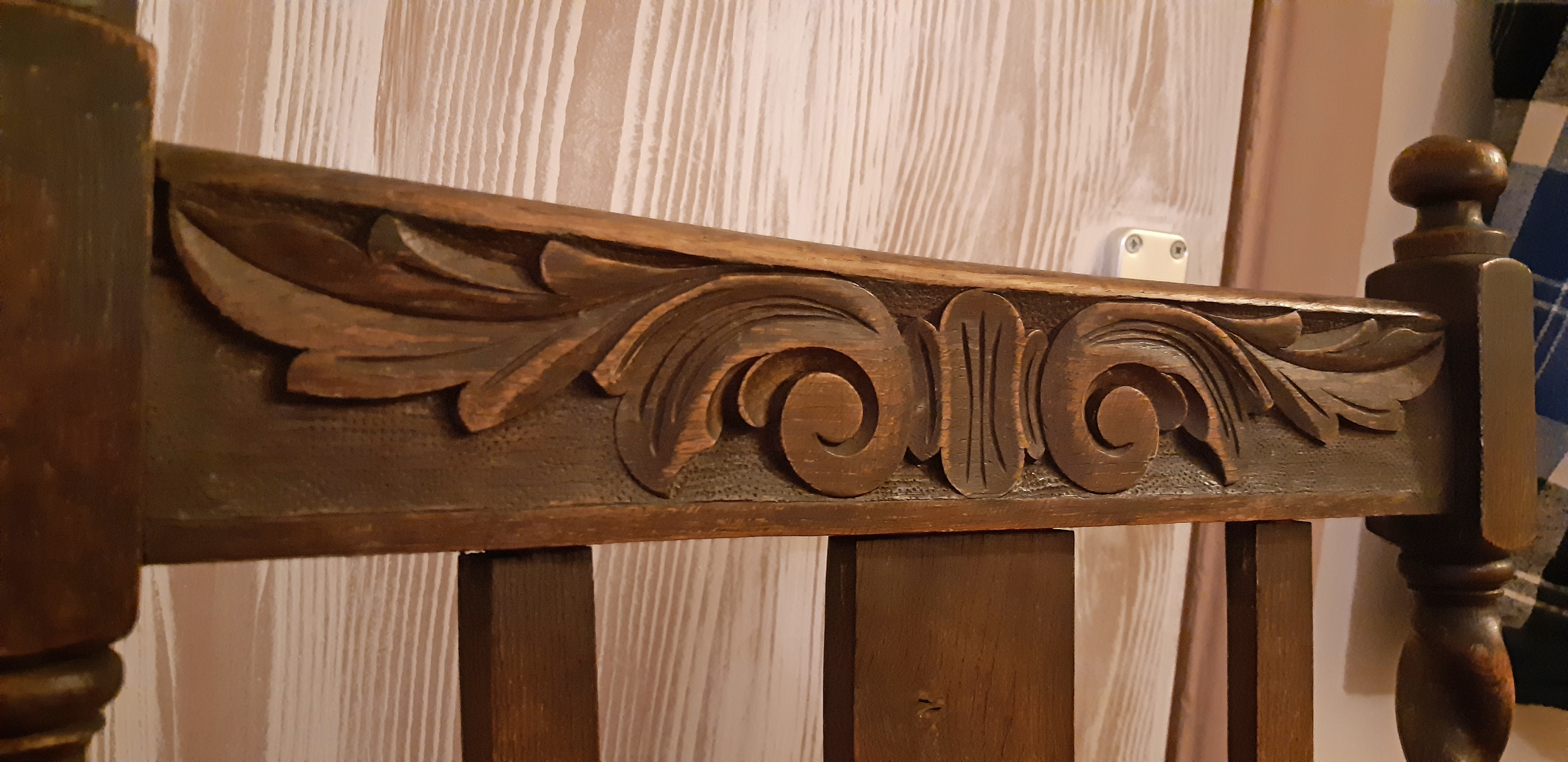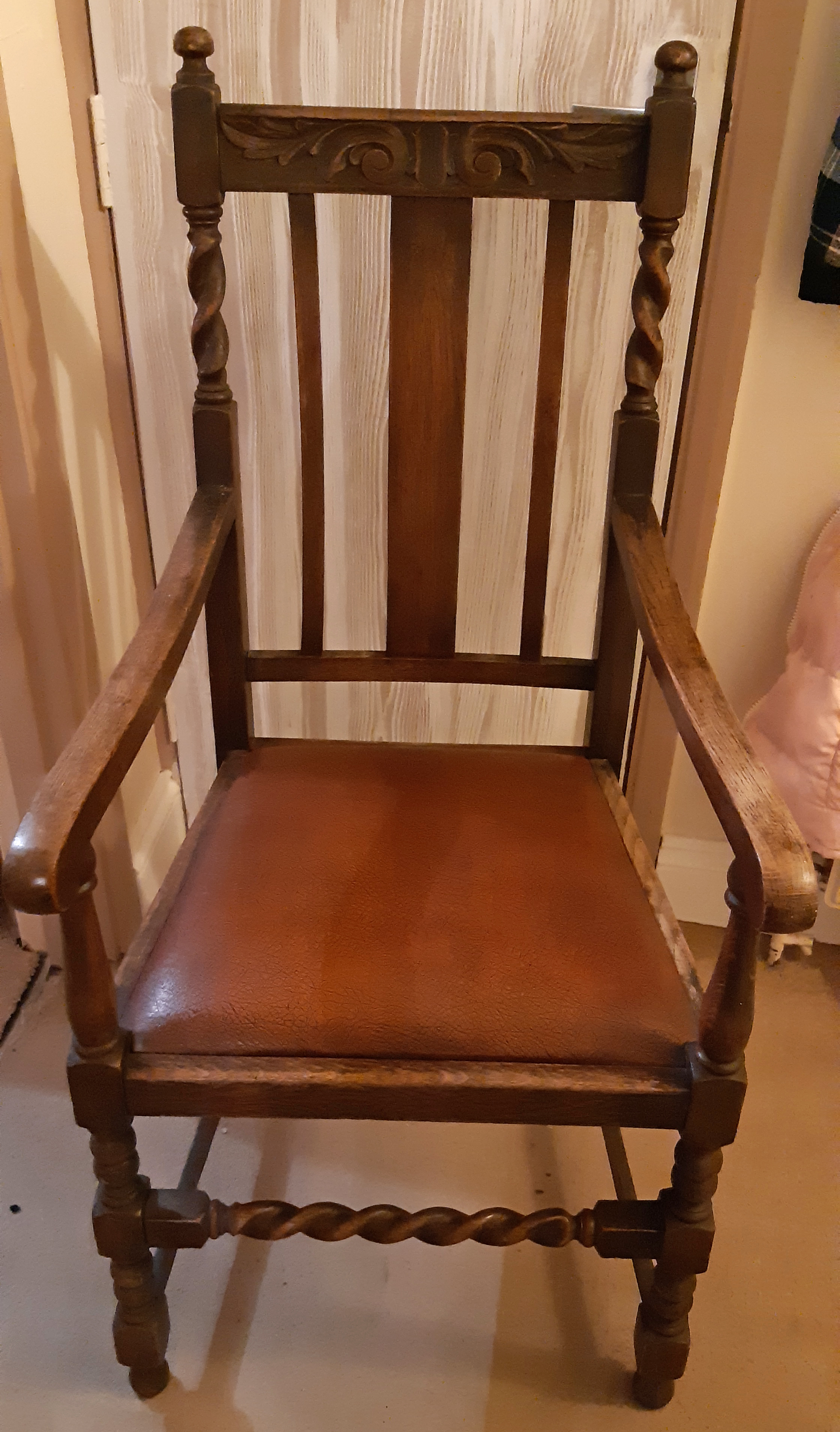 Chairs like these tend to date from the first quarter of the 20th century, they look older because they were designed to resemble Jacobean and Elizabethan furniture. Demand for chairs like this last peaked in the 1980's, demand and values since then have been in decline. at auction comparable chair often sell for under $50.00