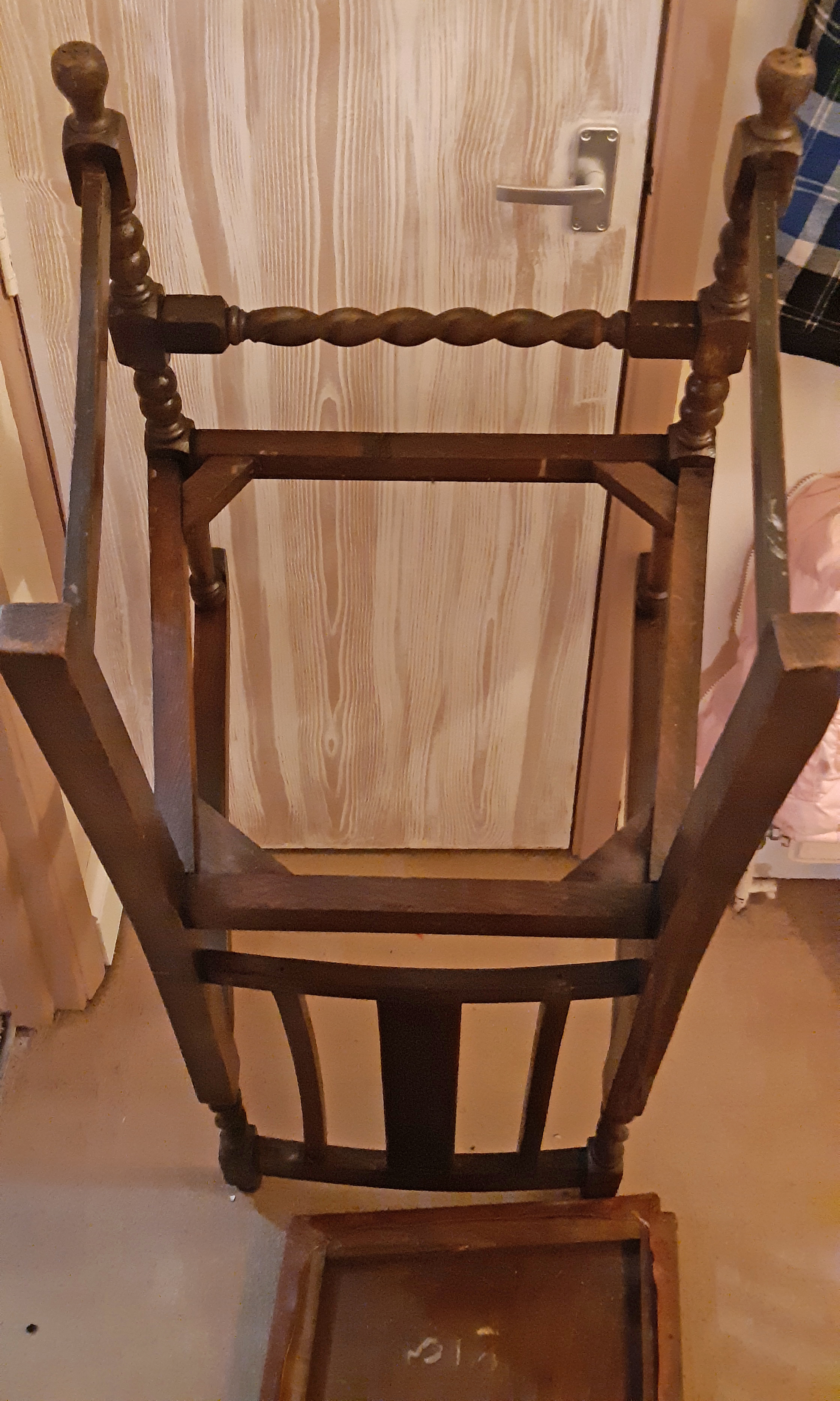 I have a couple of chairs I would like evaluations on please this is the first one, I know nothing about the age or style I just love the look of it. I have looked for any makes names, signs etc and cannot seam to find anything. There are no nails everything seams to be put together by wooden pins and slots ive even tried a magnet to see if the wooden pins were nails, but no they are wooden. So if there is anyone out that may be able to enlighten me on the age, style worth etc I would be very greatfull.