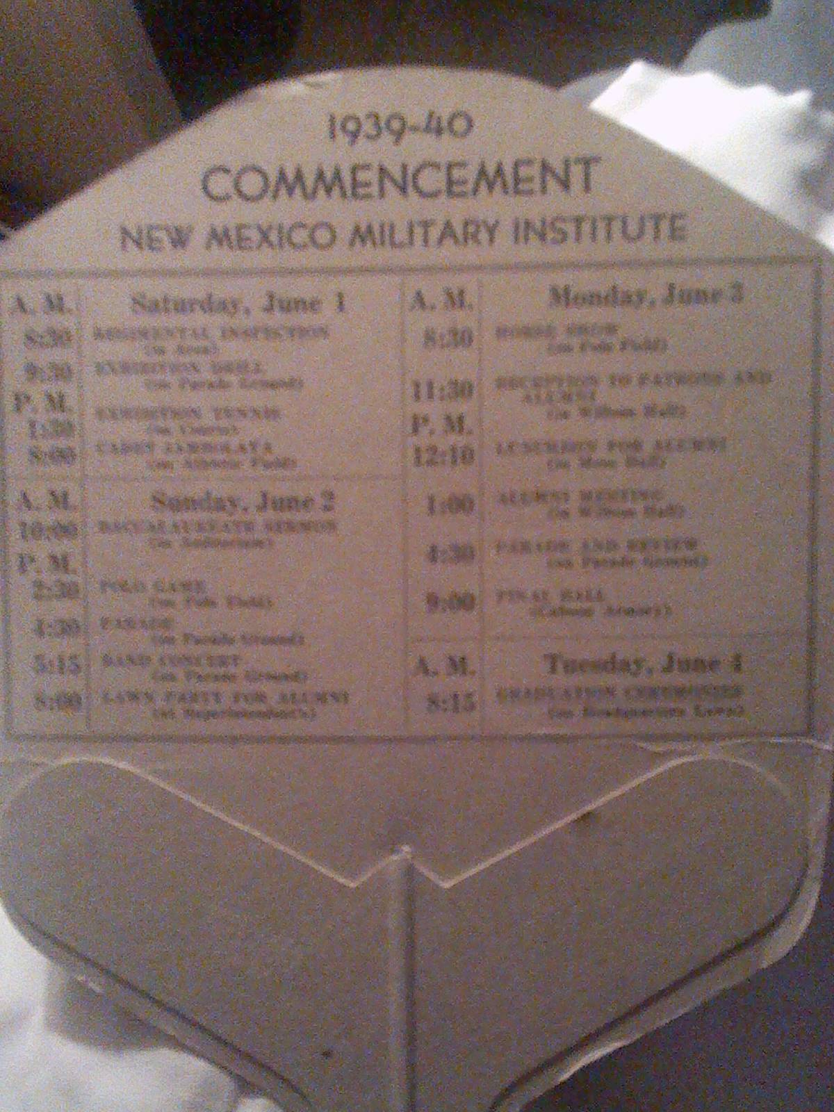 Cardboard paddle fan from NMMI commencement class of 1939-40