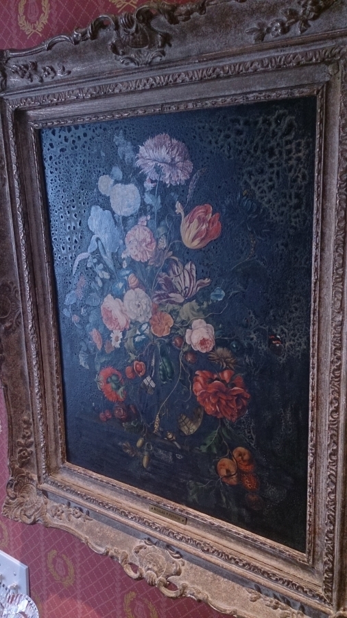 I inherited a beautiful antique painting of a vase with flowers done a board in a antique gold fram.