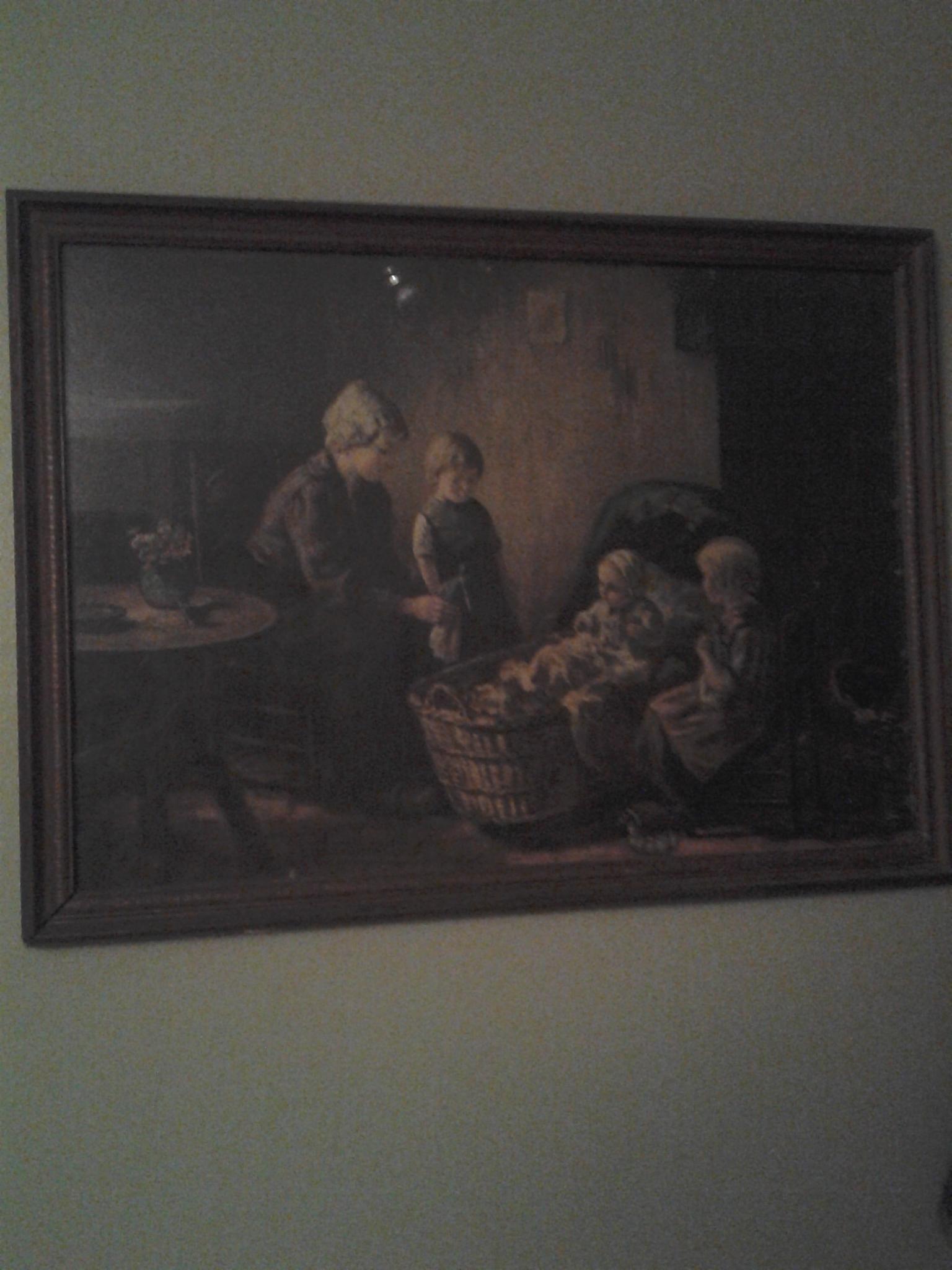 This is a painting that I know nothing about...I did see it on Antique roadshow years ago and it was appraised at 20,000....I have also seen this painting on one of those shows about "Haunted paintings"....supposedly the baby will disappear from the crib and some other strange things happened..... hopefully someone could tell me about this painting