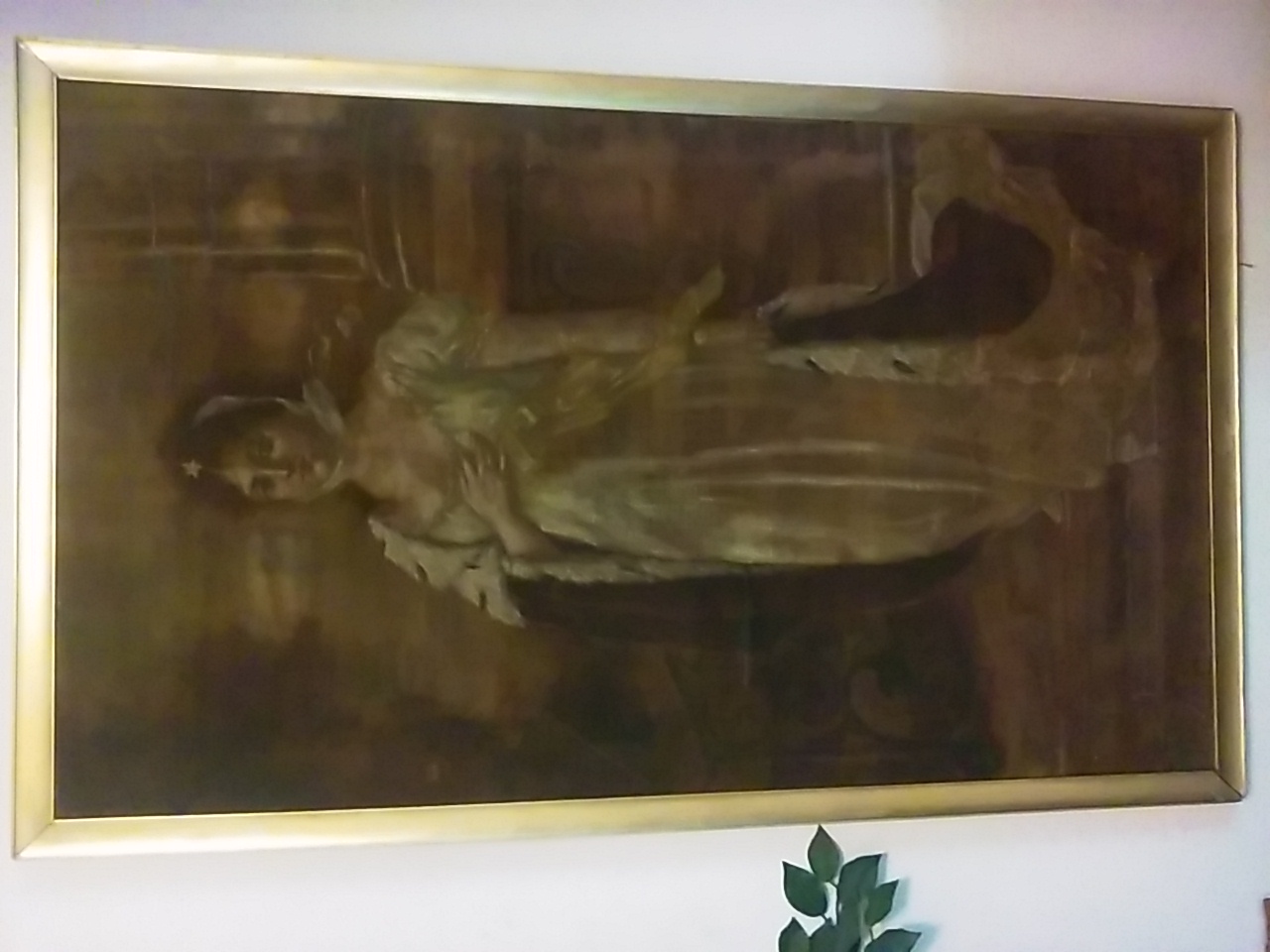 Gold frame copy of original. Frame and painting measurenent 51" H x 31" W in good condition some repair has been done from damage from past but in very good condition original frame.