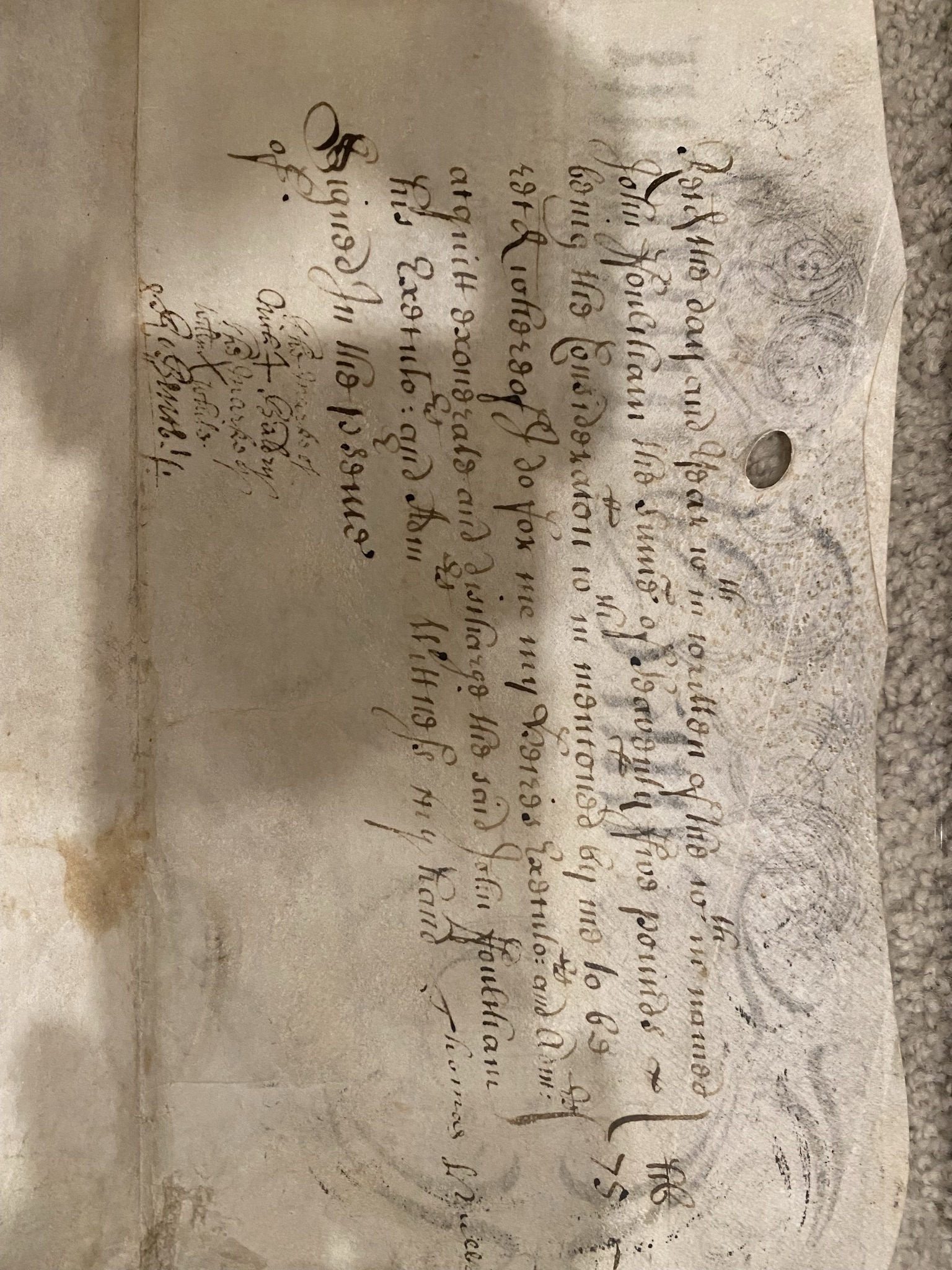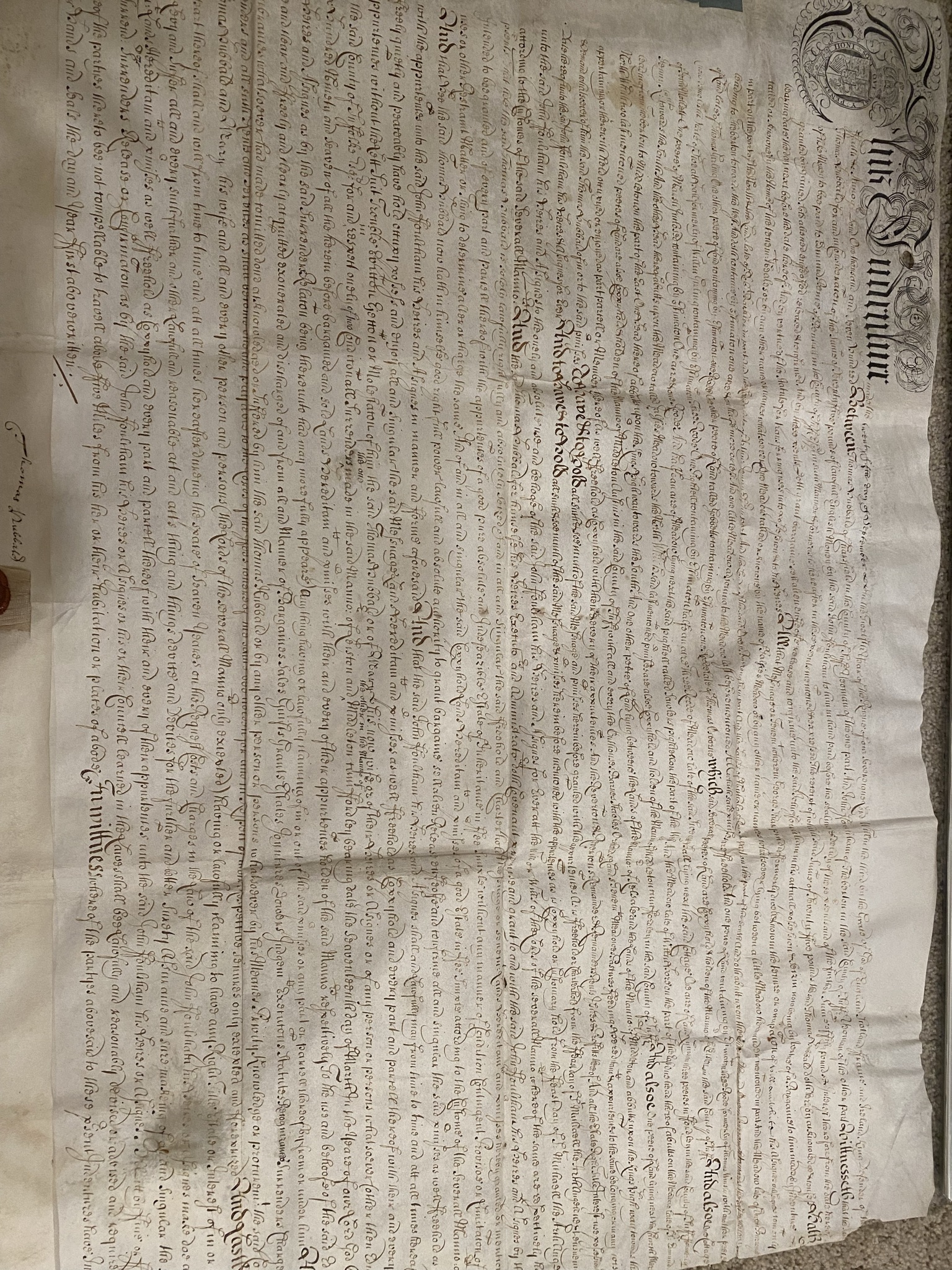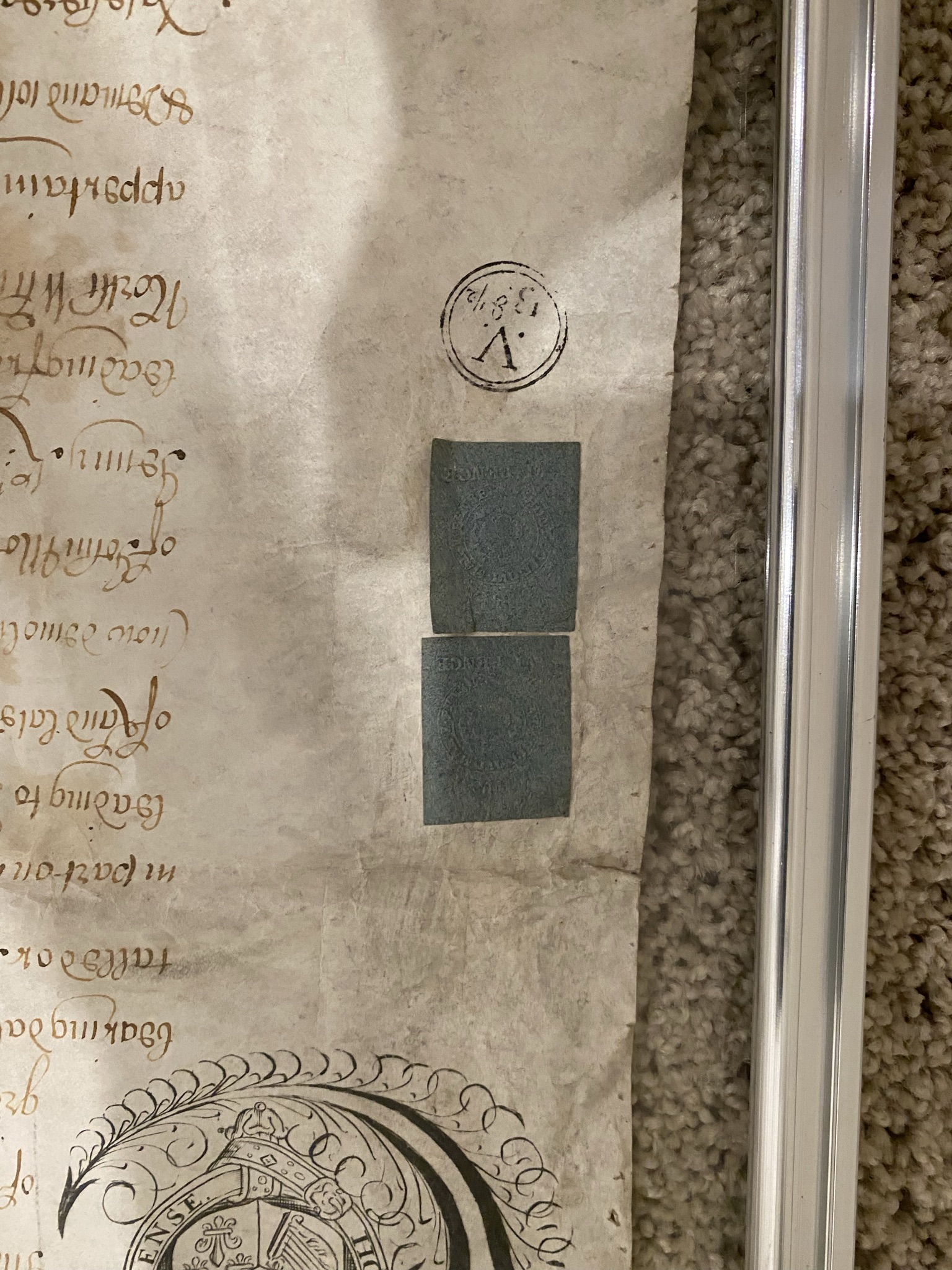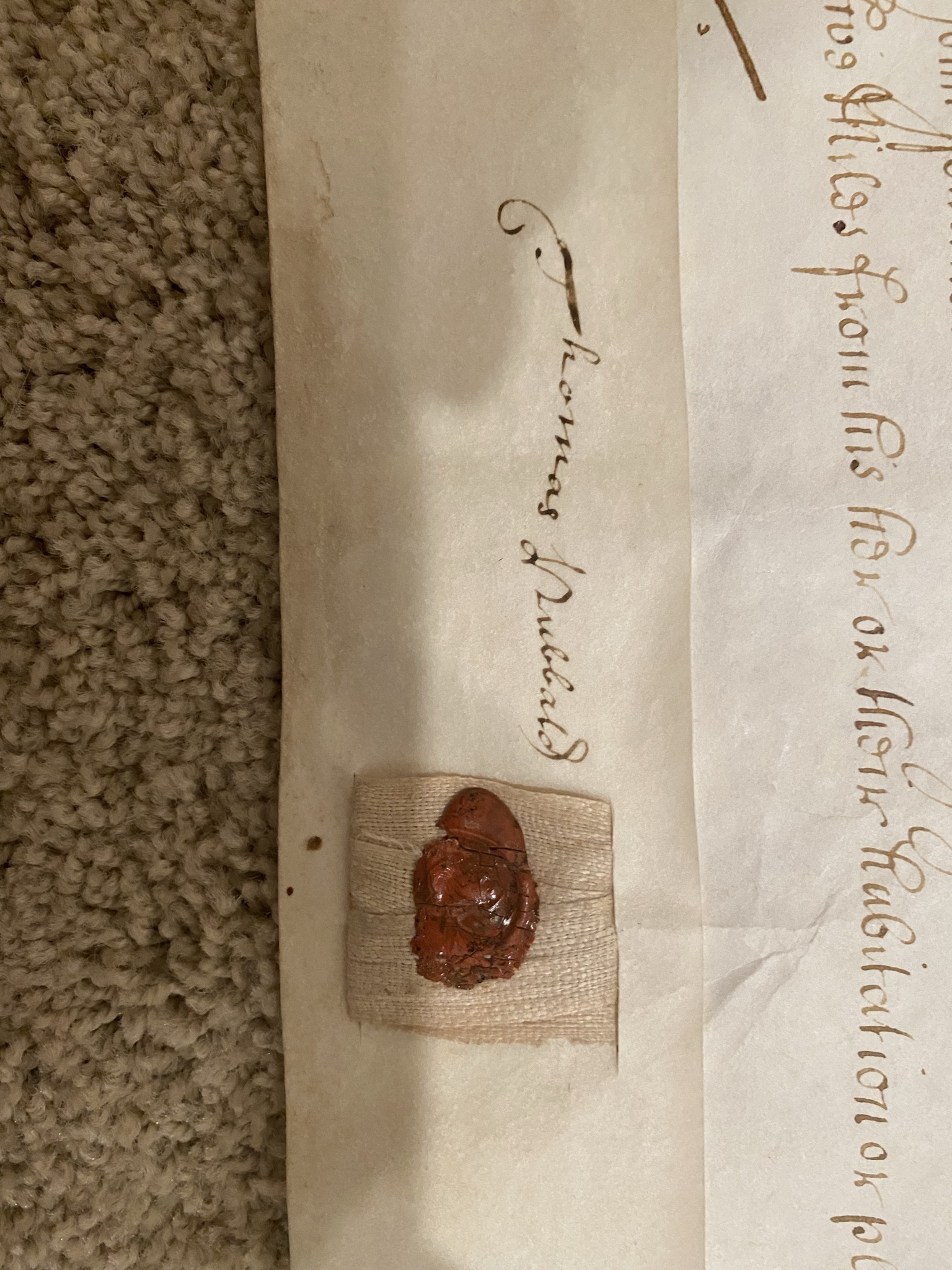 Old parchment- cream in color with dark ink and a wax stamp. Bought at an estate sale. Looking to for help at identifying and appraising.
