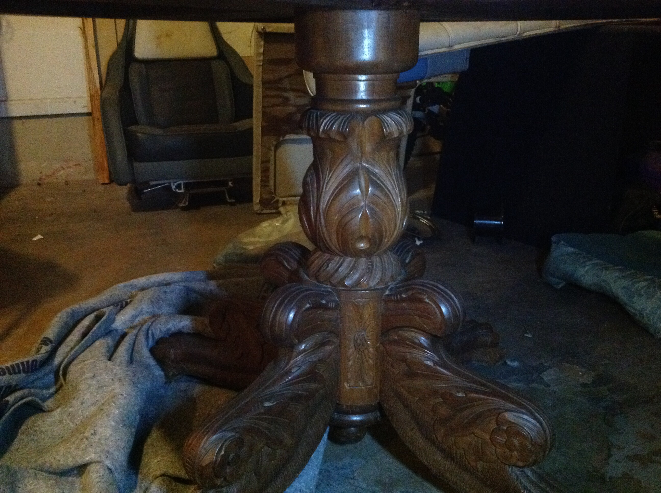 This is a round table with a solid top, no leaves can be inserted into it. The pedestal on the bottom is very ornately carved. I have not been able to find anything on the web. All I know is that my great grandmother owned it over 60 years ago.