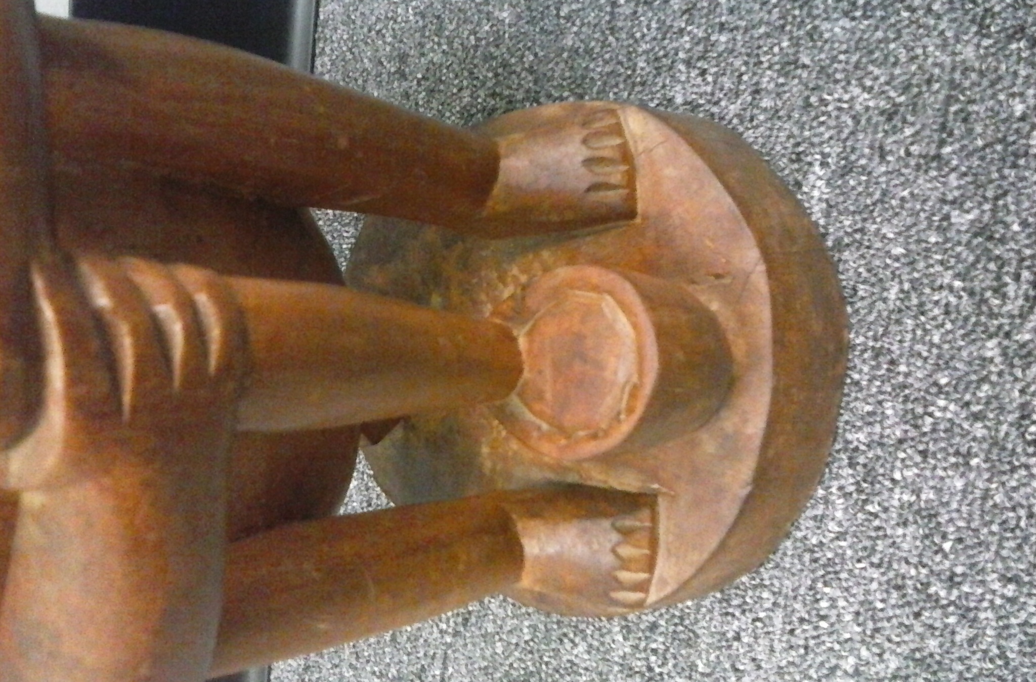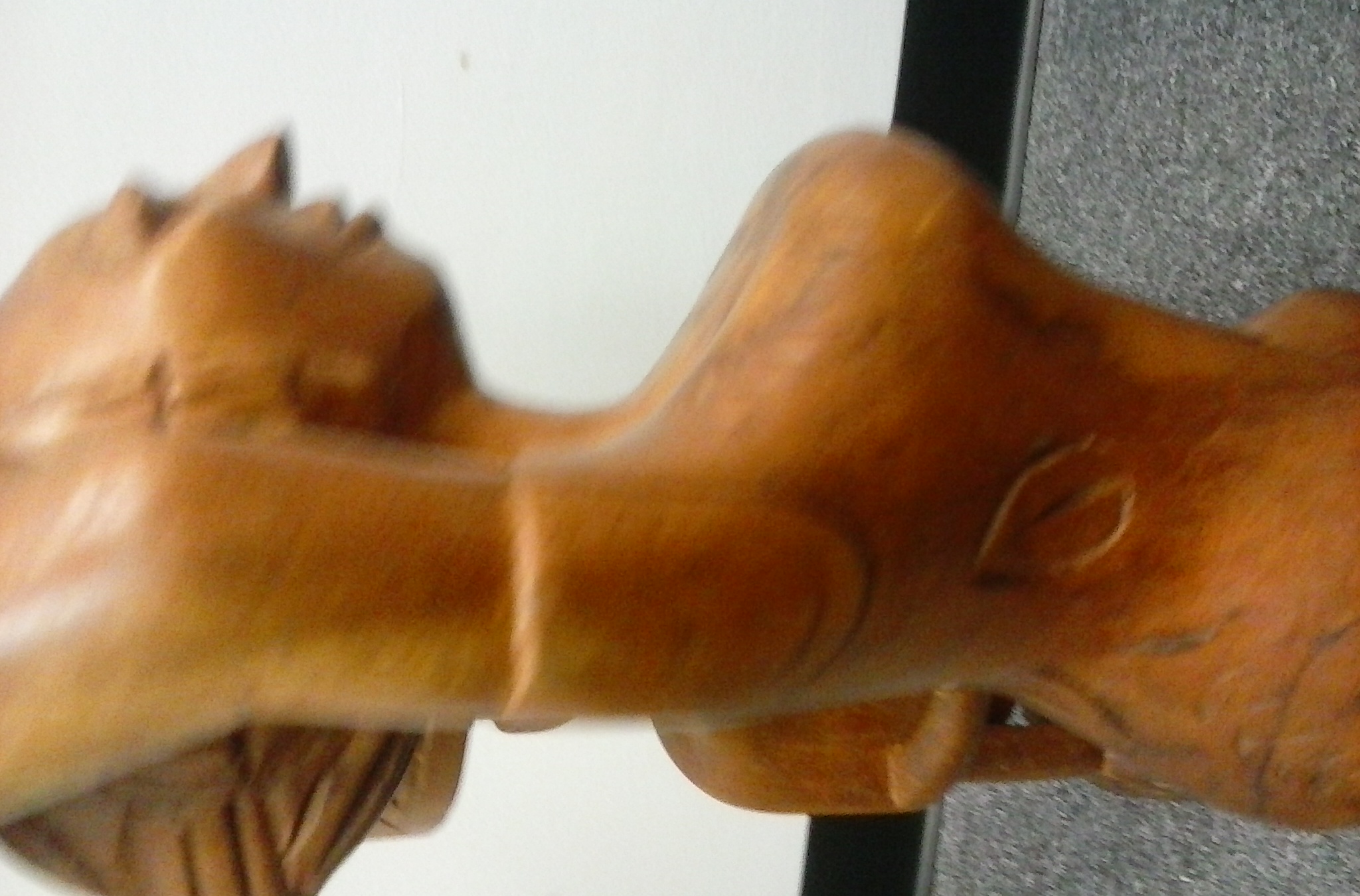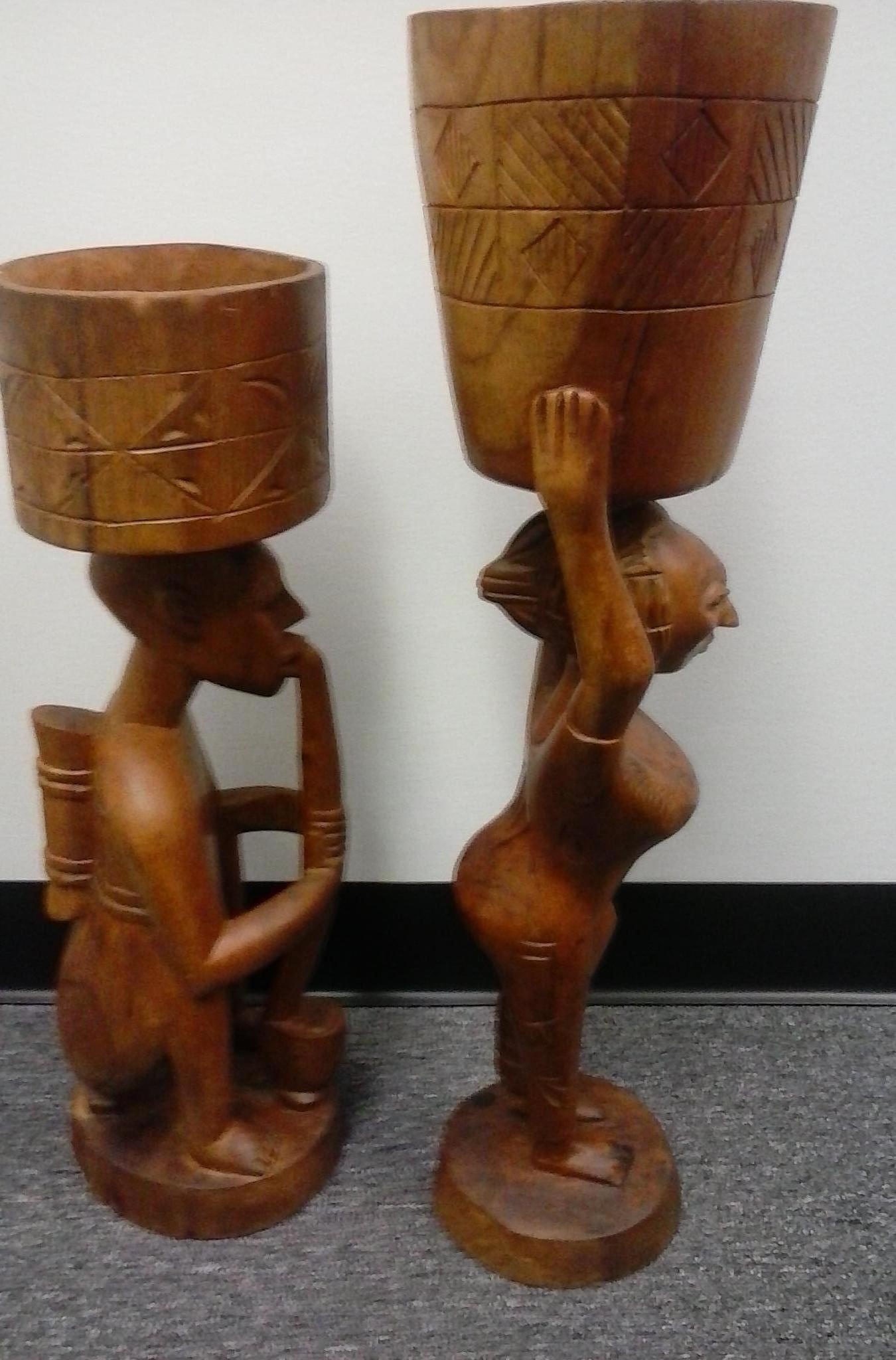 I don't know much about these pieces of art. I  bought them at a thrift store. These hand-carved pieces got my attention and several others shopping. They're solid wood and there's nothing on the bottom of them, so I don't know who crafted these. I'm sorry I can't be a big help, but like I mentioned, they were donated and I bought them.
