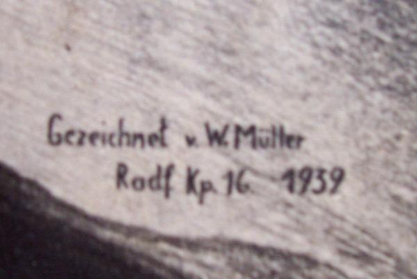 2 signatures and on the Photo is Gezeichnet v. W. Muller Radf. Kp. 16. 1939 The u in Muller has 2 dots over it.