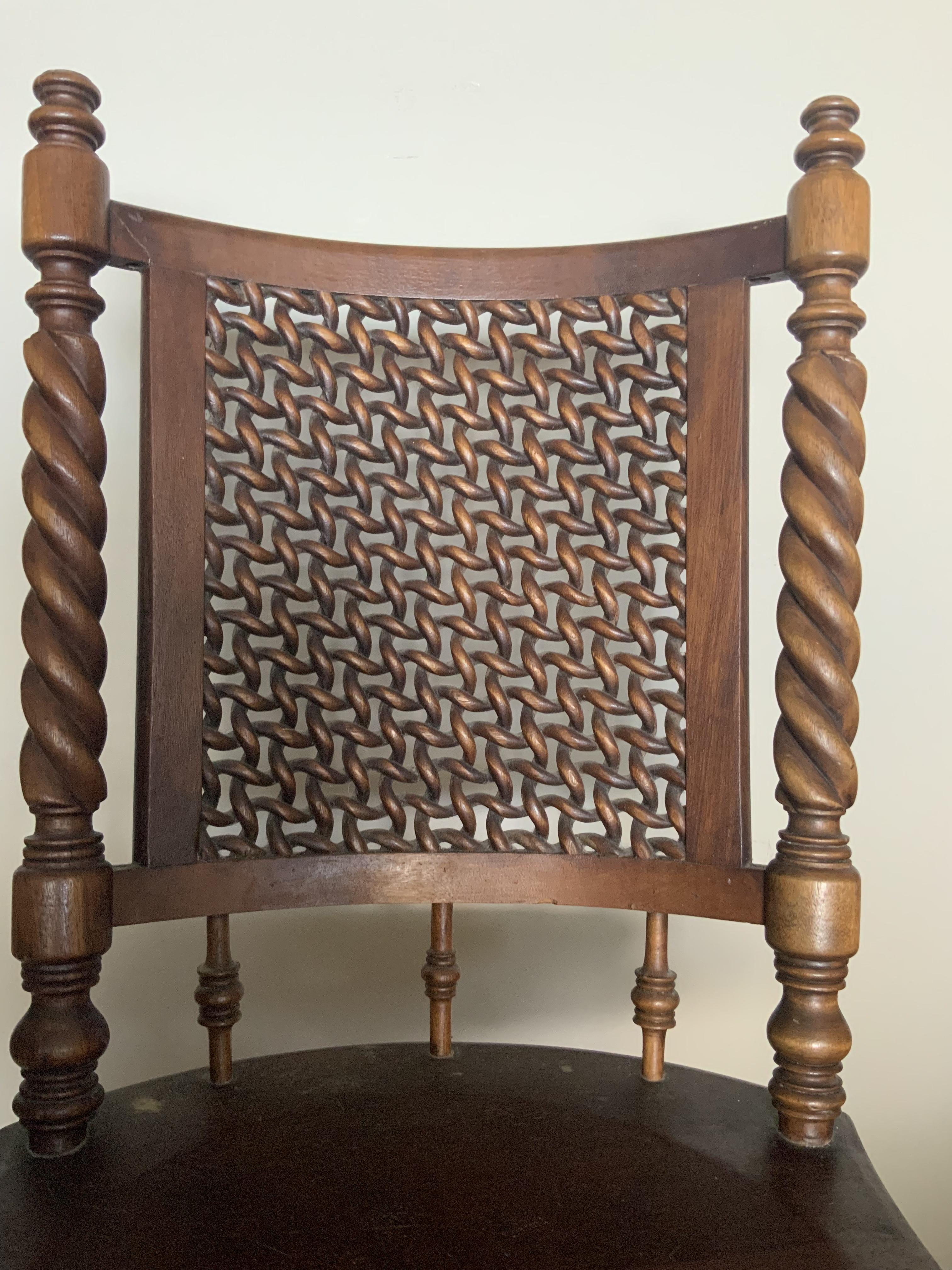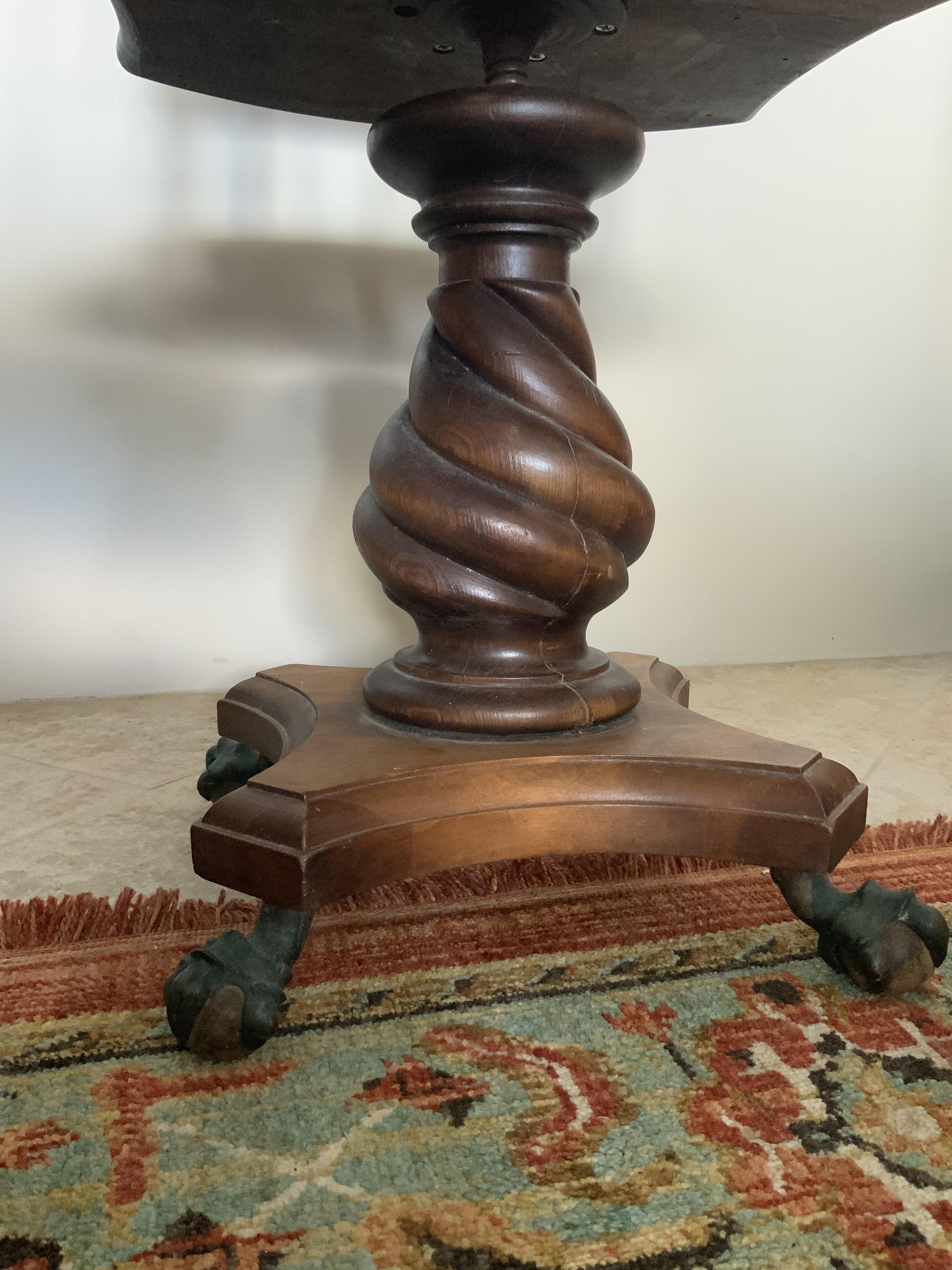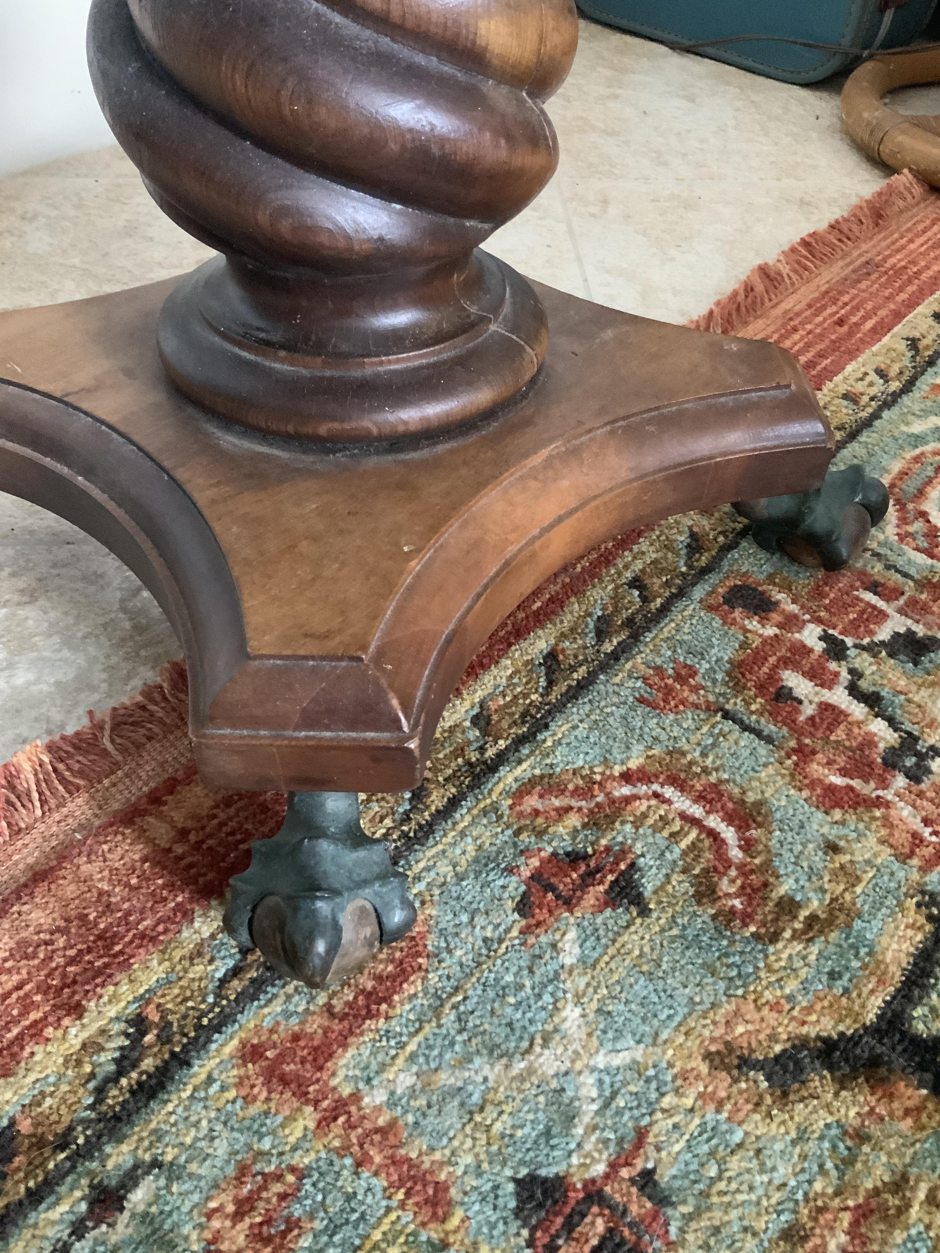 This very unique chair swivels, appears to be hand carved in places (twisty spindles on back, twisted base), has bronze eagle claw feet grasping wooden balls. The metal swivel parts were recently replaced. My mother said it used to have pineapples on top of each side spindle of the back. Apparently those were removed at some point. Passed down in the family, I have no idea what the style is, where it was made. I am interested in knowing anything about it, and I would like to sell it to someone who would love it as much as I have all my life.