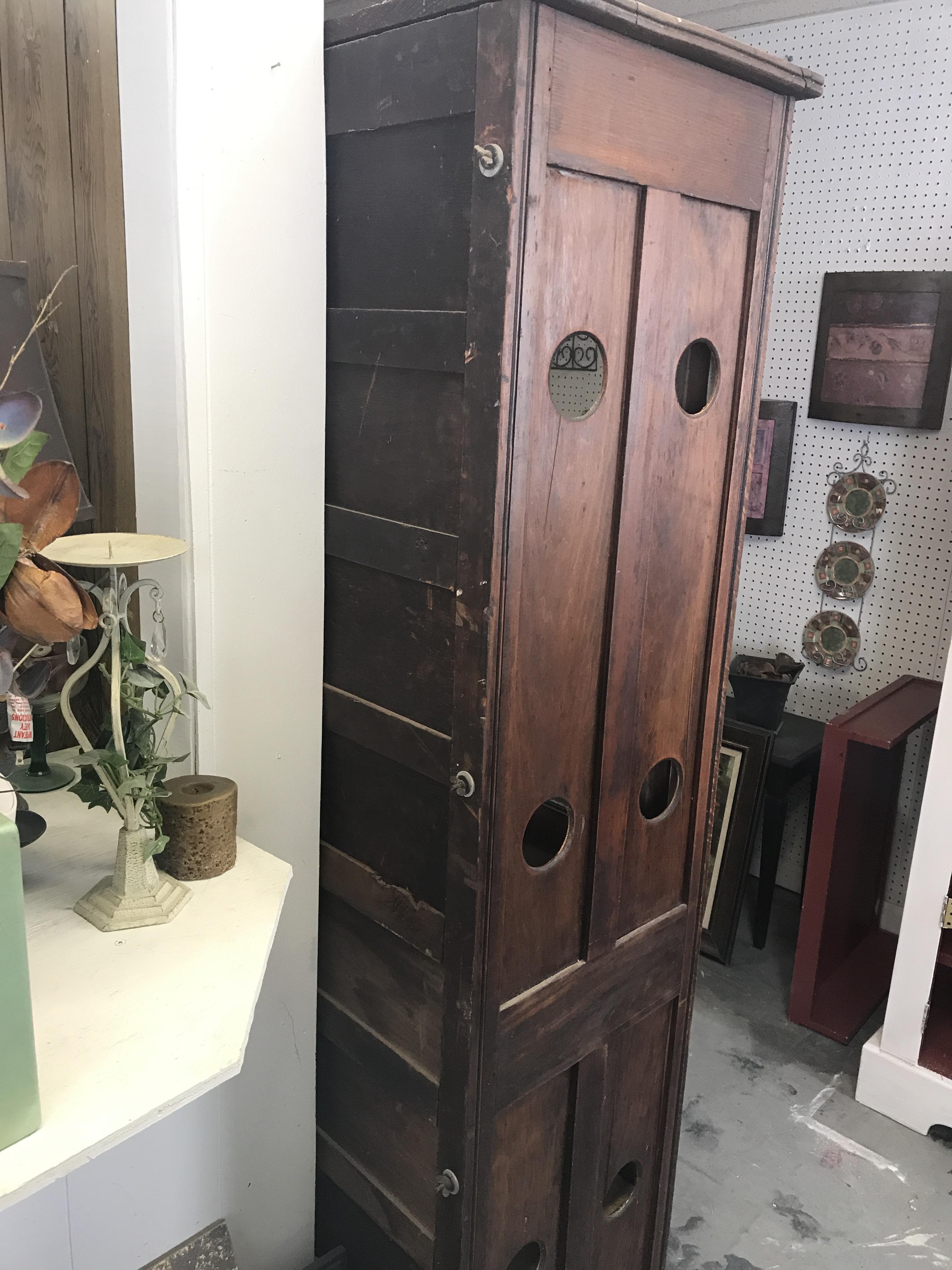 It has 12 vent holes on the sides Skeleton key locks on top and bottom. wing nut on back