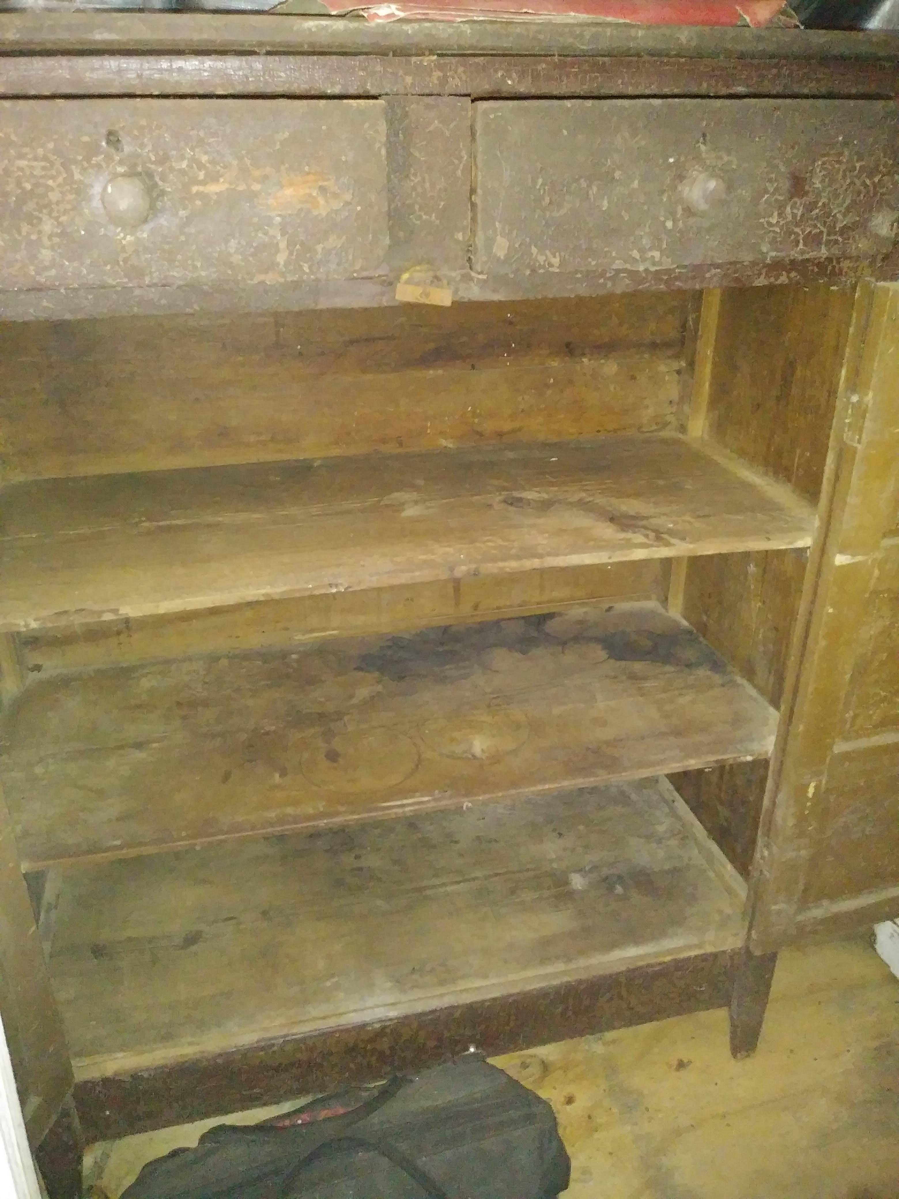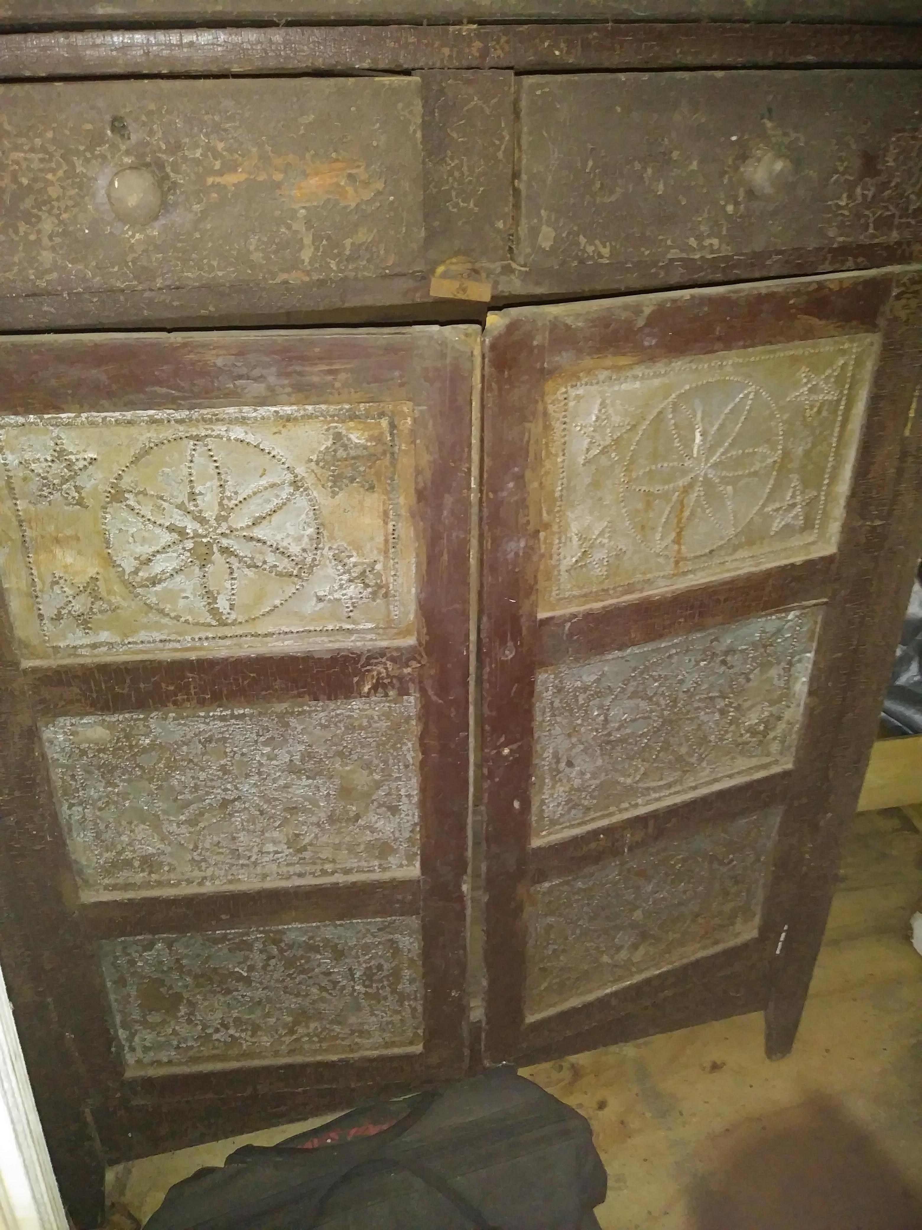Acquired this pie safe from a neighbor it was her great great grandmother late 1800's or early 1900's. Its a solid piece all original but the top piece need replacing. Looks its age