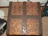 oak wood slats, metal cladding, filigree pattern,black tacks, other metal designs