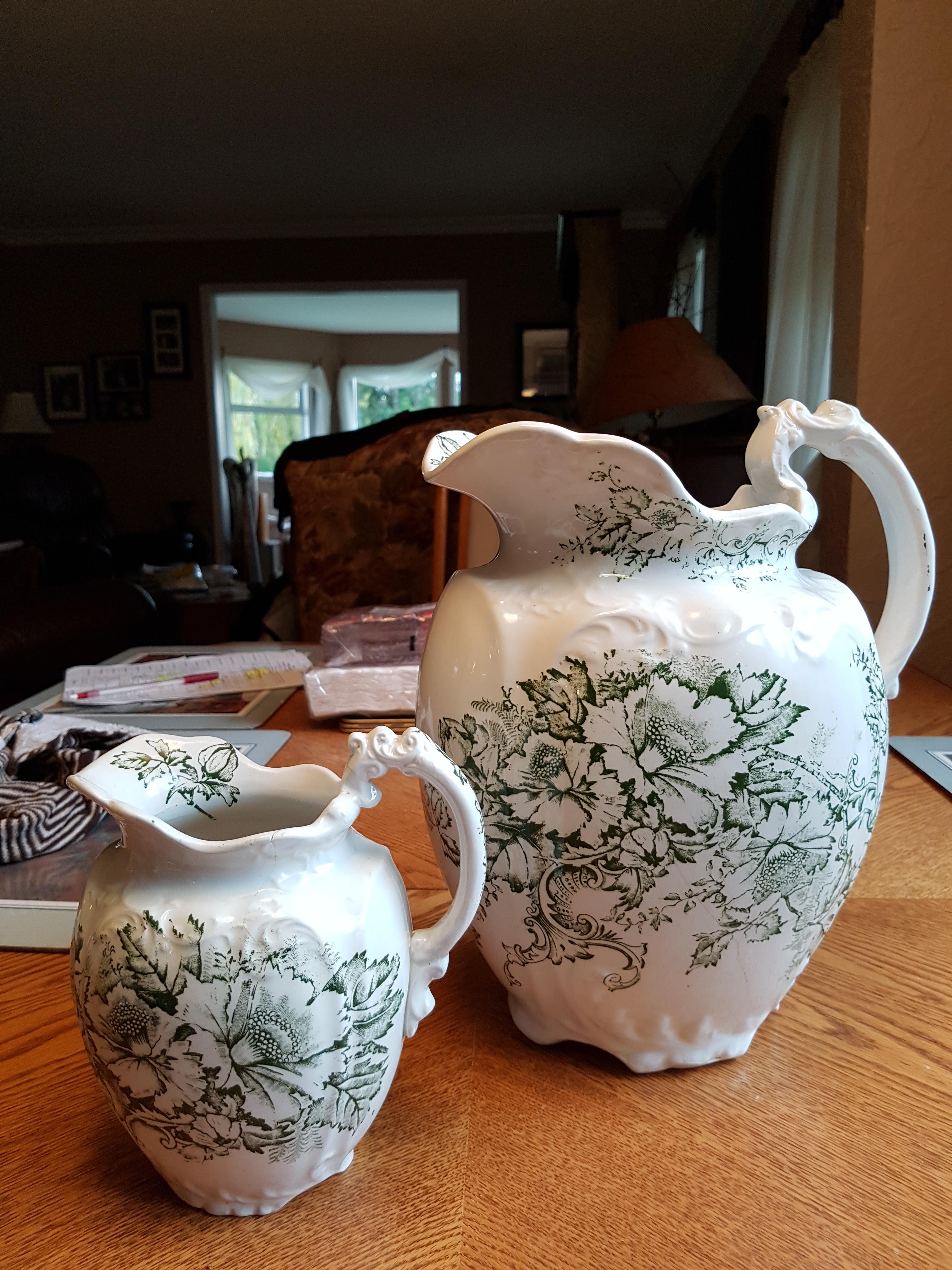 I am looking for information on where and when these jugs were made and where I might be able to find the wash basin that goes with ithem.