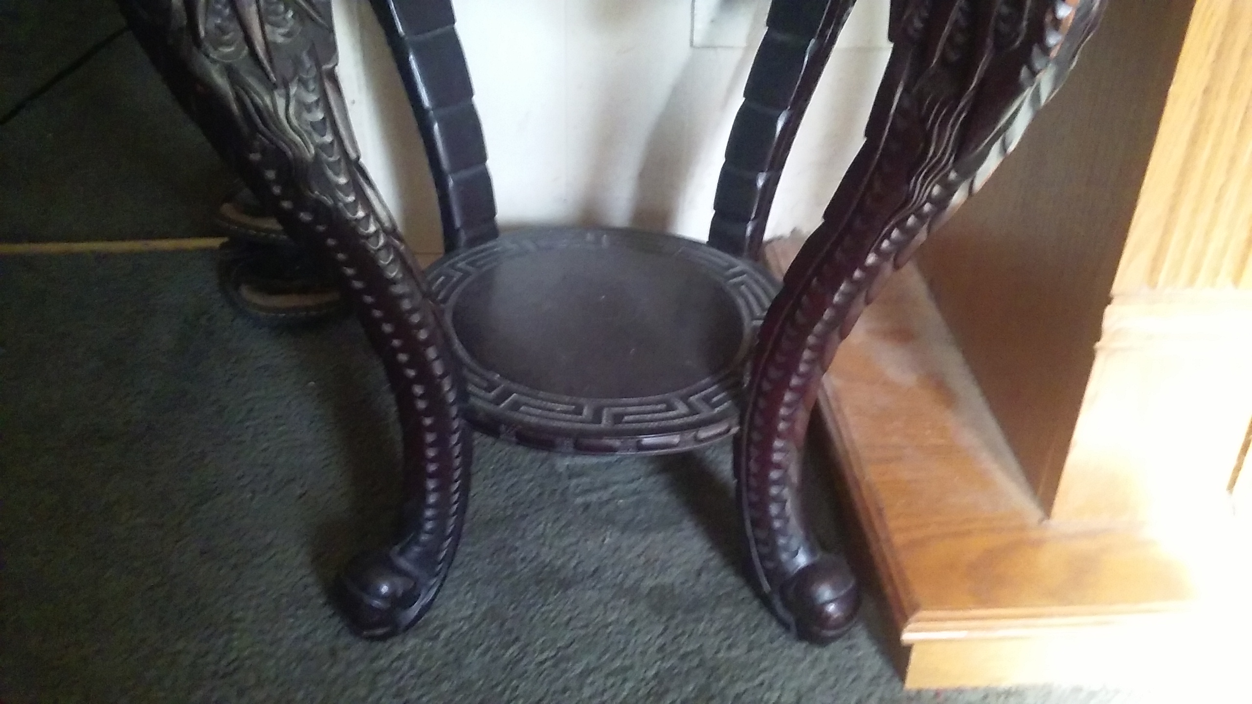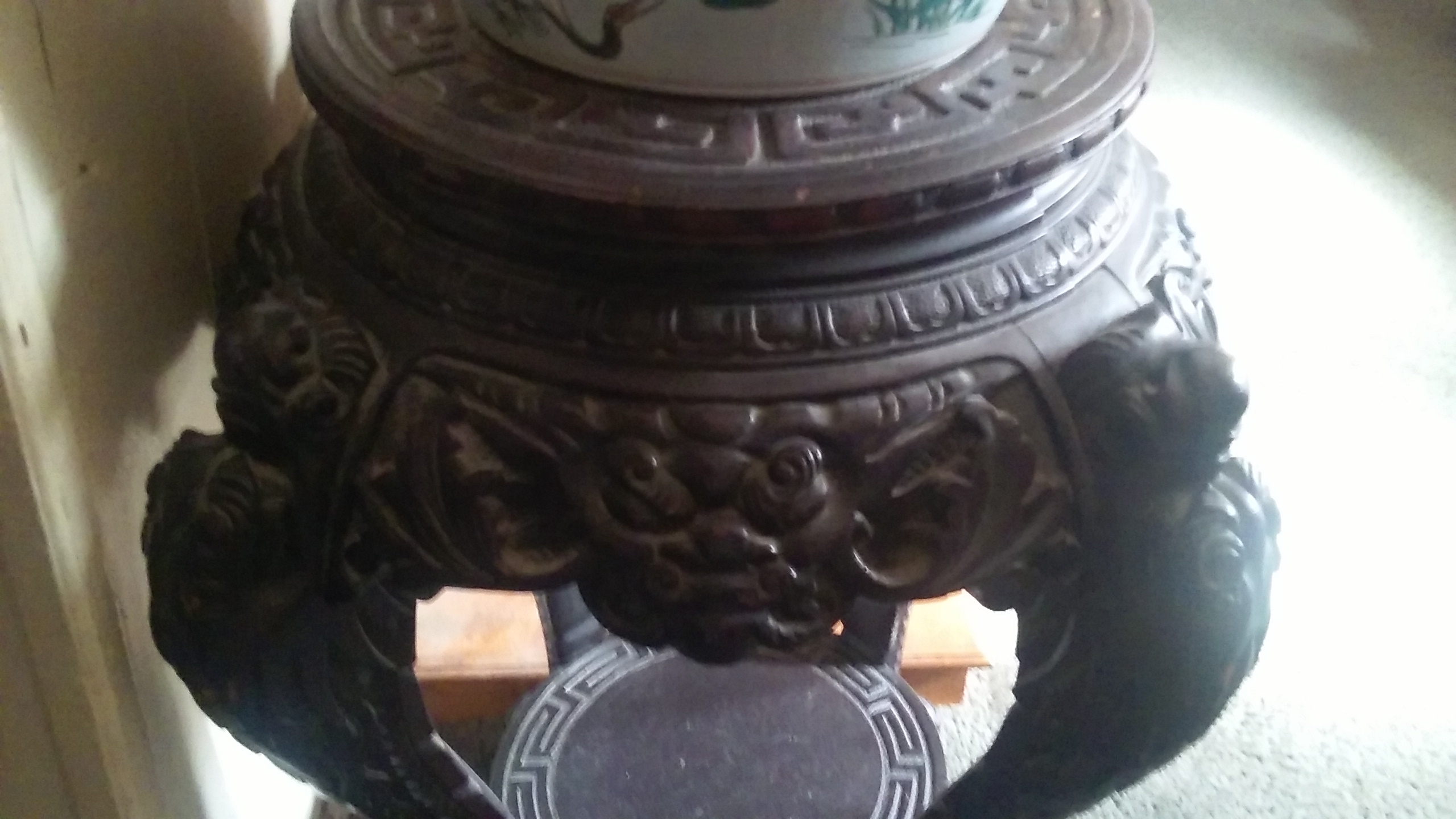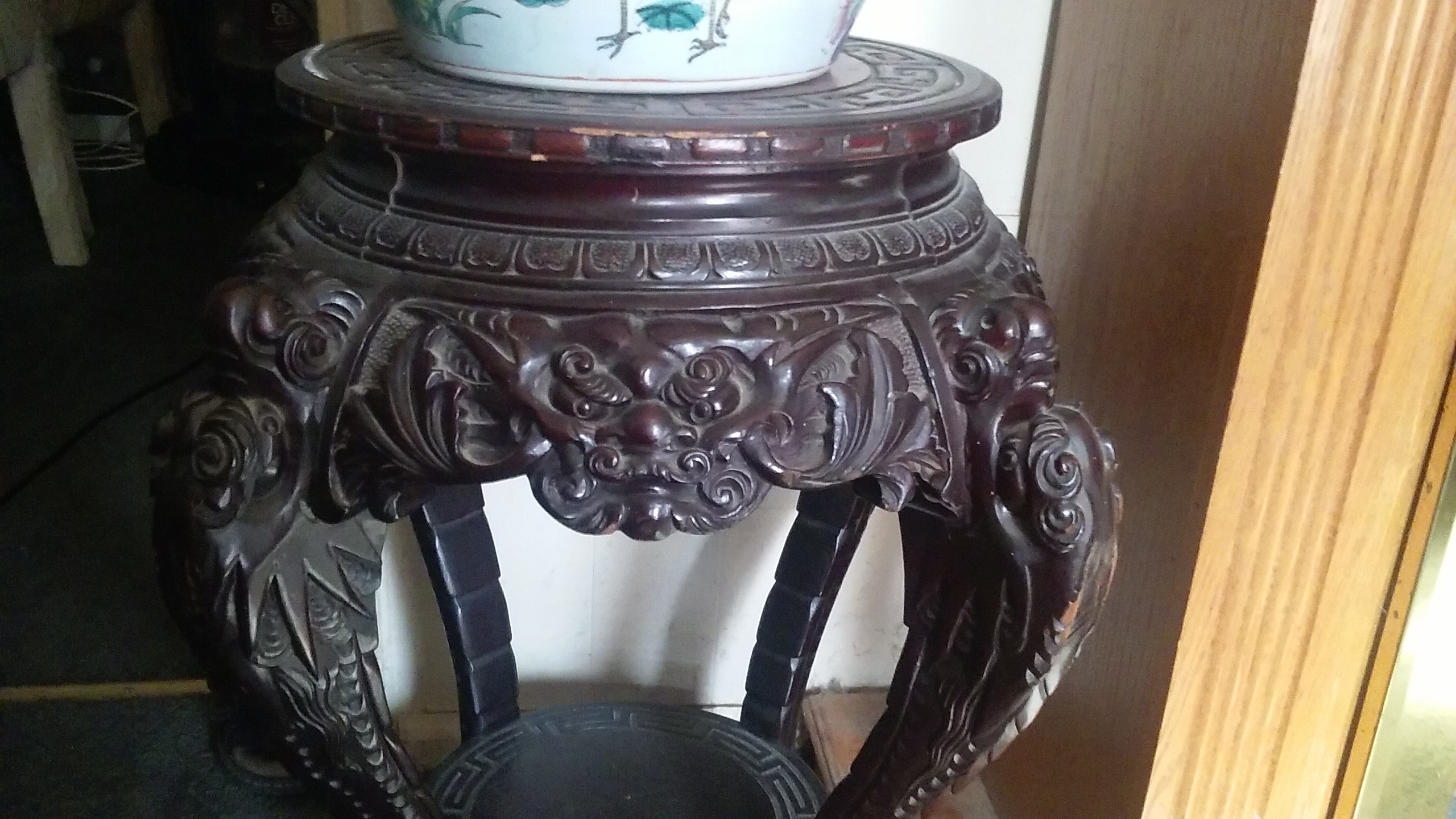 Description I have a plant stand aisian looking, ornate carved...possibly rosewood. Would like to know the age, value etc...