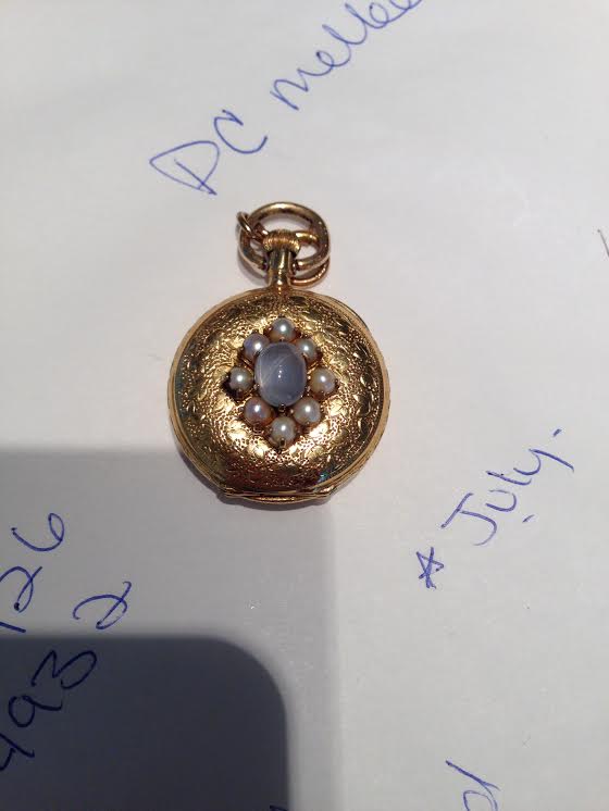 The gold tests 18k and the pearls and star sapphire are real. The watch is in good working order. I have no information on this pocket watch.