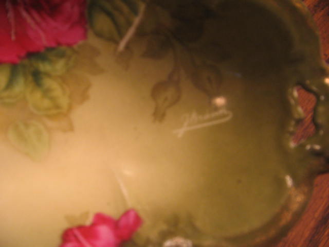ANTIQUE Porcelain BAVARIAN PLATE w ROSES-Gold J. BRAUN