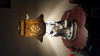 Porcelain maroon and white with gold trim about 13 1/2 inches tall without light fixture Martha sitting and George in the floor next to her with a book in his hand