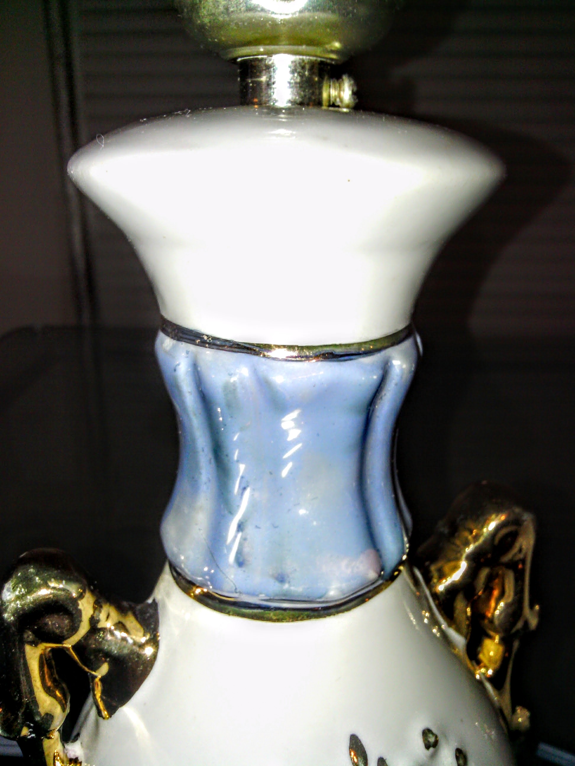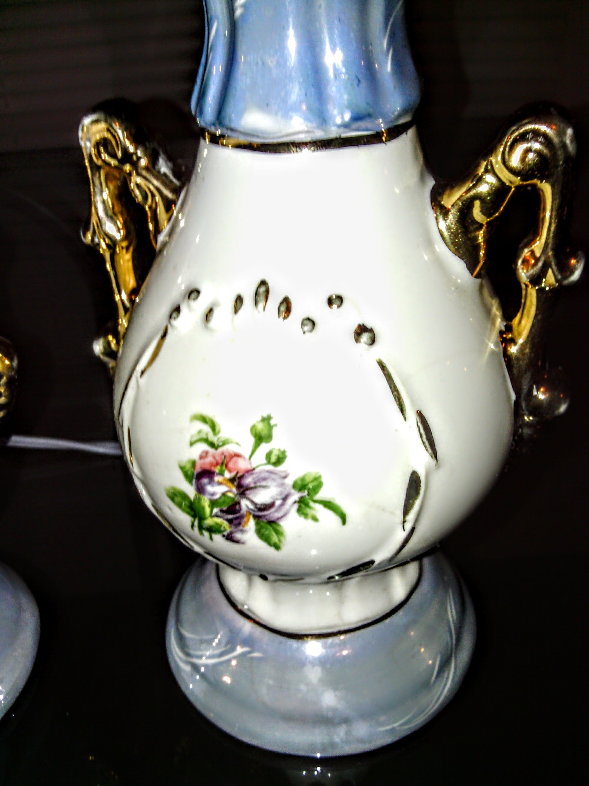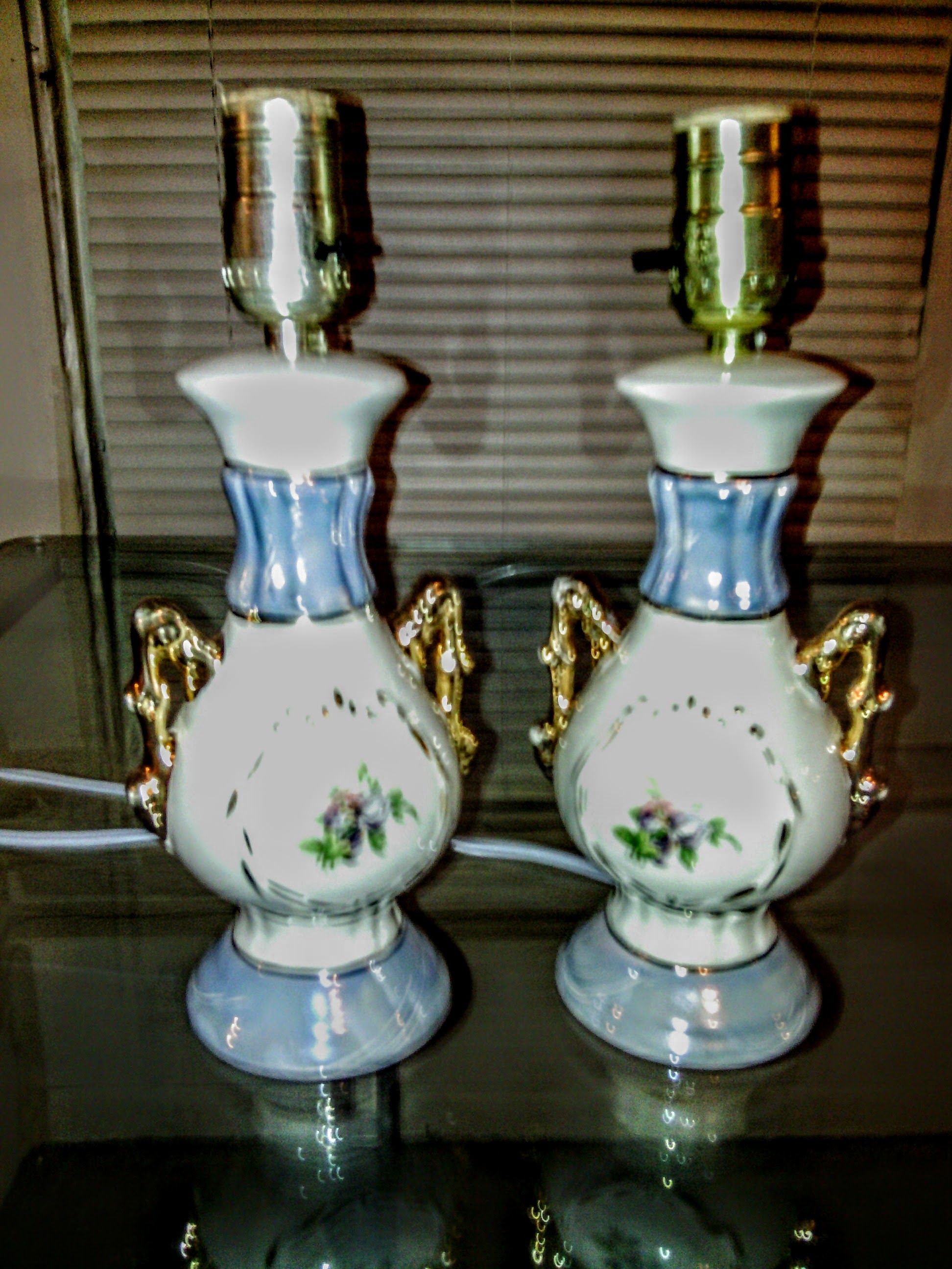 Hand painted. 11" All origional working parts. Aqua Pearl- Gold Pearl. Eagle light socket brass. General Electtrict plug