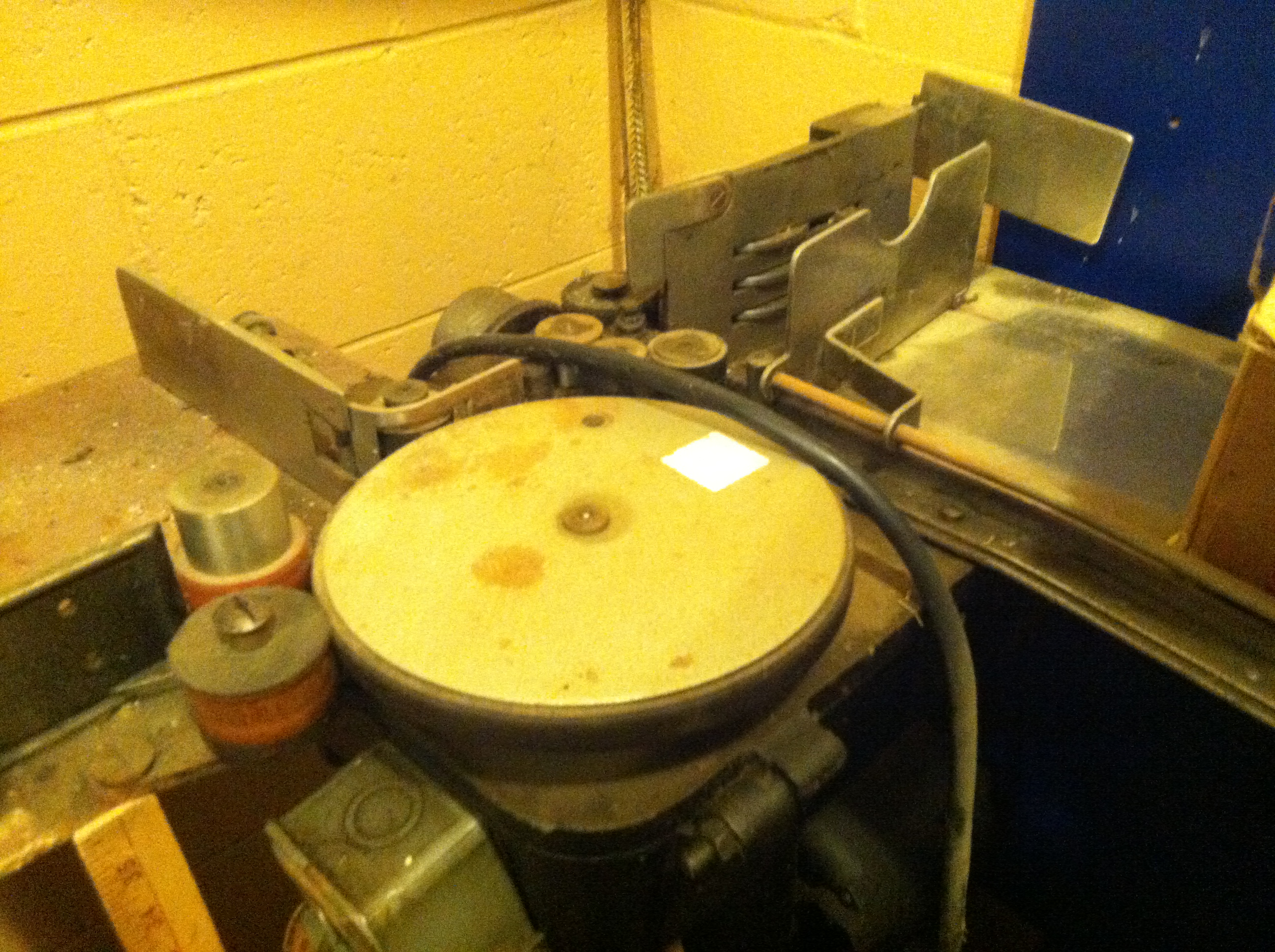 Floor mount letter canceling machine stands about 3 foot tall. Each post office had these machines before mail processing plants were used.