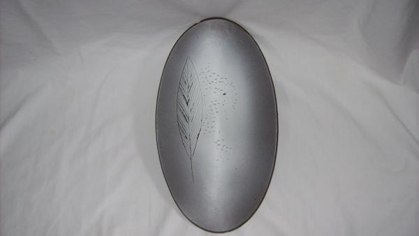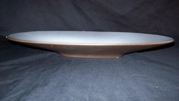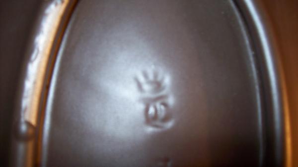 I have a beautiful old piece of pottery that I have would like to know the maker & value of. It is a very large plate or dish covered with a thick rich brown matte glaze. The front of has a white-grey glaze applied somehow with an intricate feather design carved in it! There is a carved marking on the back under the glaze of a "5 point crown or jesters hat" & the initials "CC" backwords & criss-crossed directly under the crown. It is 15" long, 8 1/2" wide, and is about 1 1/2" tall. There is about a 1/4" chip along outer rim, otherwise it is in excellent condition. I found this in an old house I was cleaning out that was full of antiques so I have no other history on it! I live in Decatur, MI USA.
