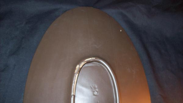 carved 5-point crown or jesters hat with initials "CC' backwards & criss-crossed directly underneath