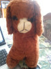 This item was handed down to a friend when she was little 1948-49. She said that her mother was the one to recover it in the black cloth (from an old dress) and that it was old when they received it. Underneath, the cloth is a fabric and burlap below that. I have not taken it apart far enough to make sure that there is straw below the burlap, but that is what it feels like. One of the back legs feels like it is broke high up. The stand has holes at both ends which I thought might mean that it had once sat on a set of rockers. The underneath of the stand (board), you can see older paint and where the wheels/axels? have been removed.