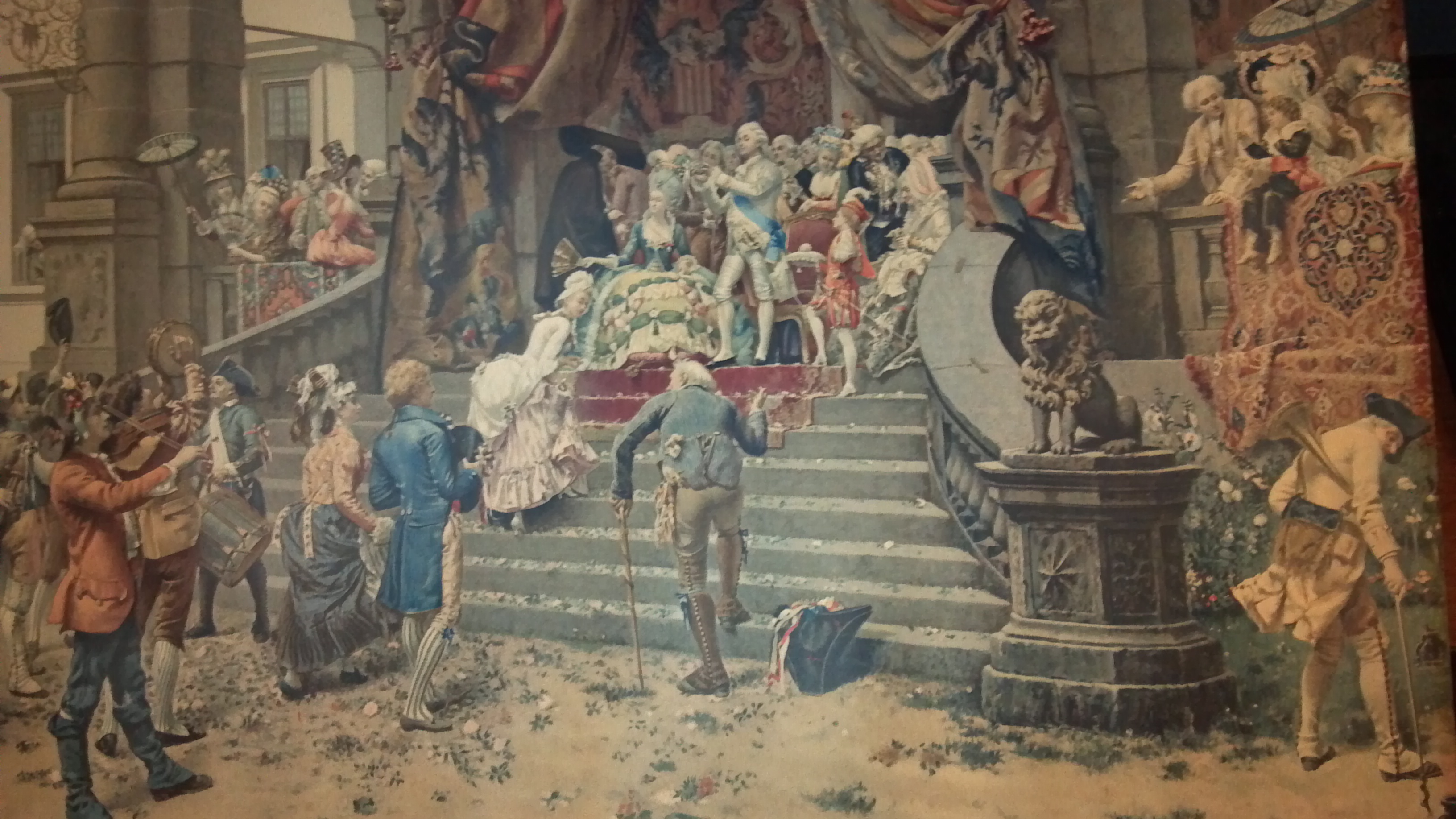 I have a print dated 1922 of what appears to be a victorian era coronation of a french queen possibly Marie Antoinnette. I have pictures posted and the original frame as well.