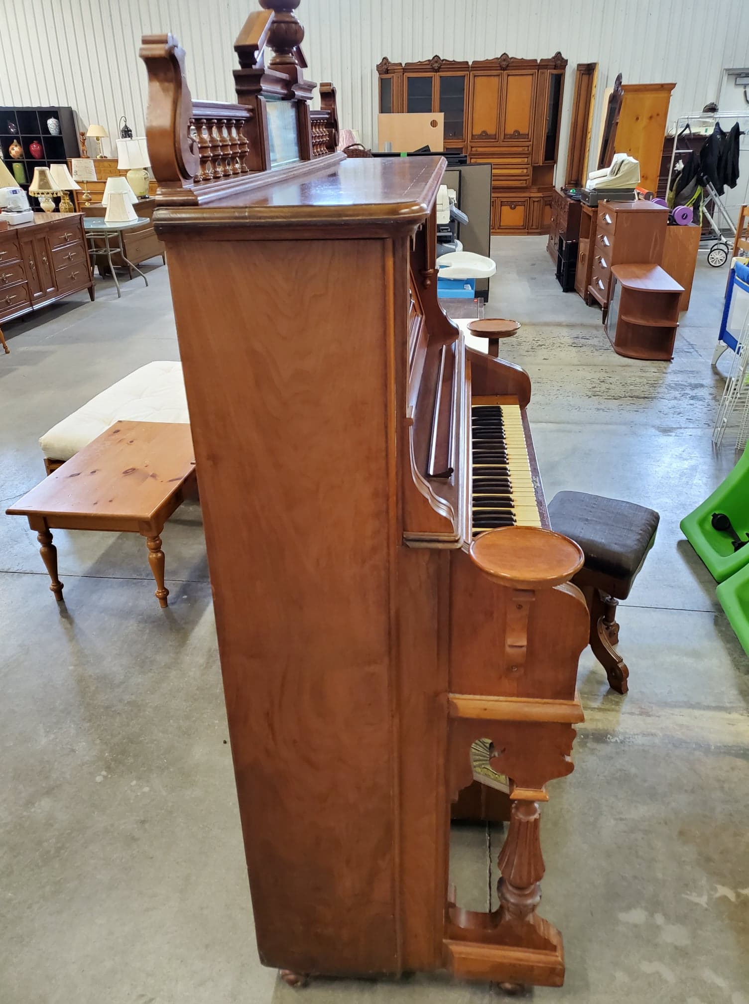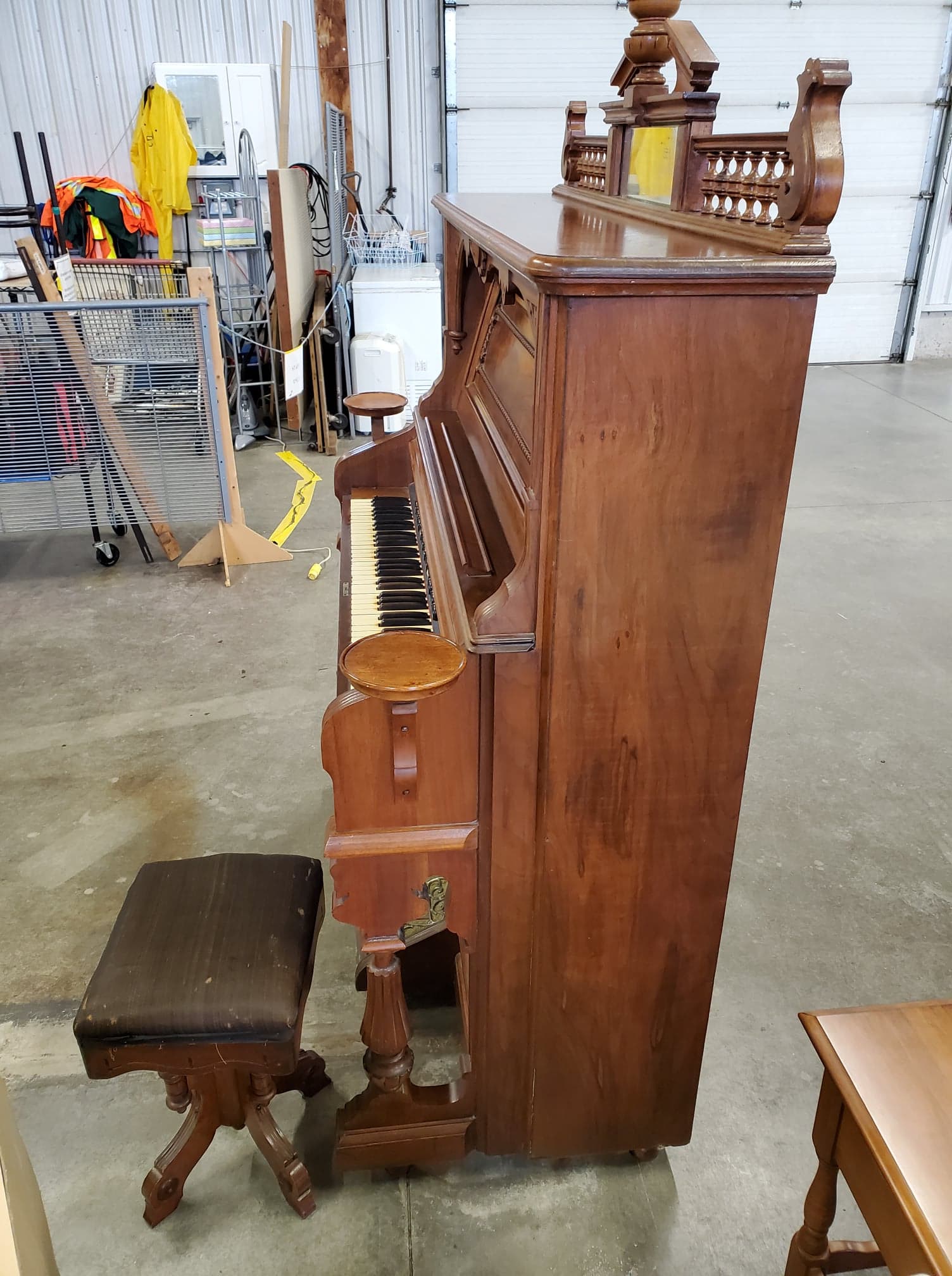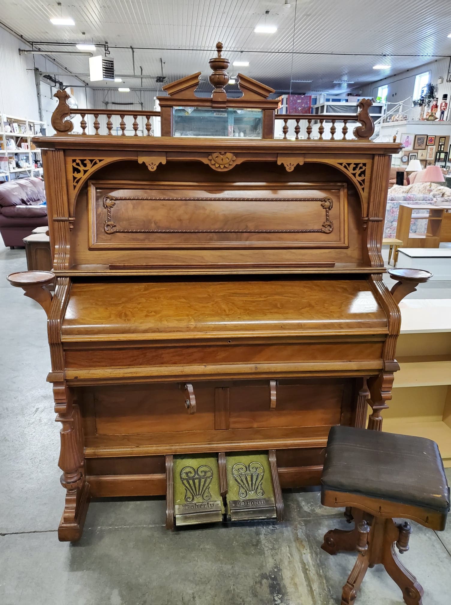 Antique wooden pump organ made by W. Doherty & Co. in Clinton, ON in 1900 as based on the serial number, 34999. The organ is still fully functional and in good shape. It also comes with the stool that came with it.