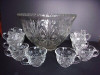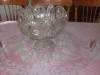 I have an antique glass punch bowl set with 12 matching cut glass cups, a ladel and 3 large serving trays. I would like to ID for resale value as I do not use it anymore. I cannot find any type of company stamp or marking on any of the pieces. Also, it does not appear to have any seams, so I'm wondering if it is real crystal? Any thoughts on these pieces would be greatly appreciated! Thanks!