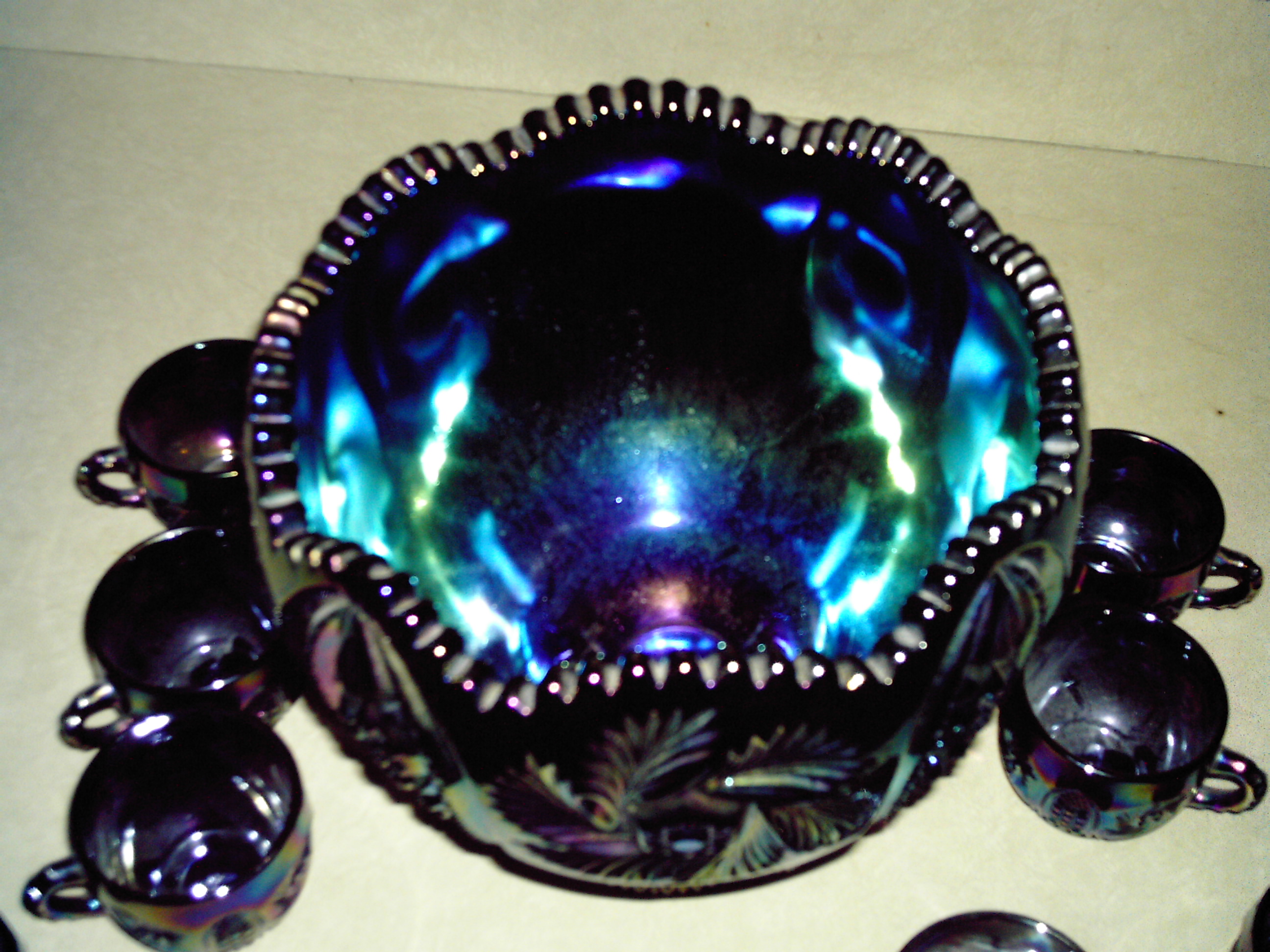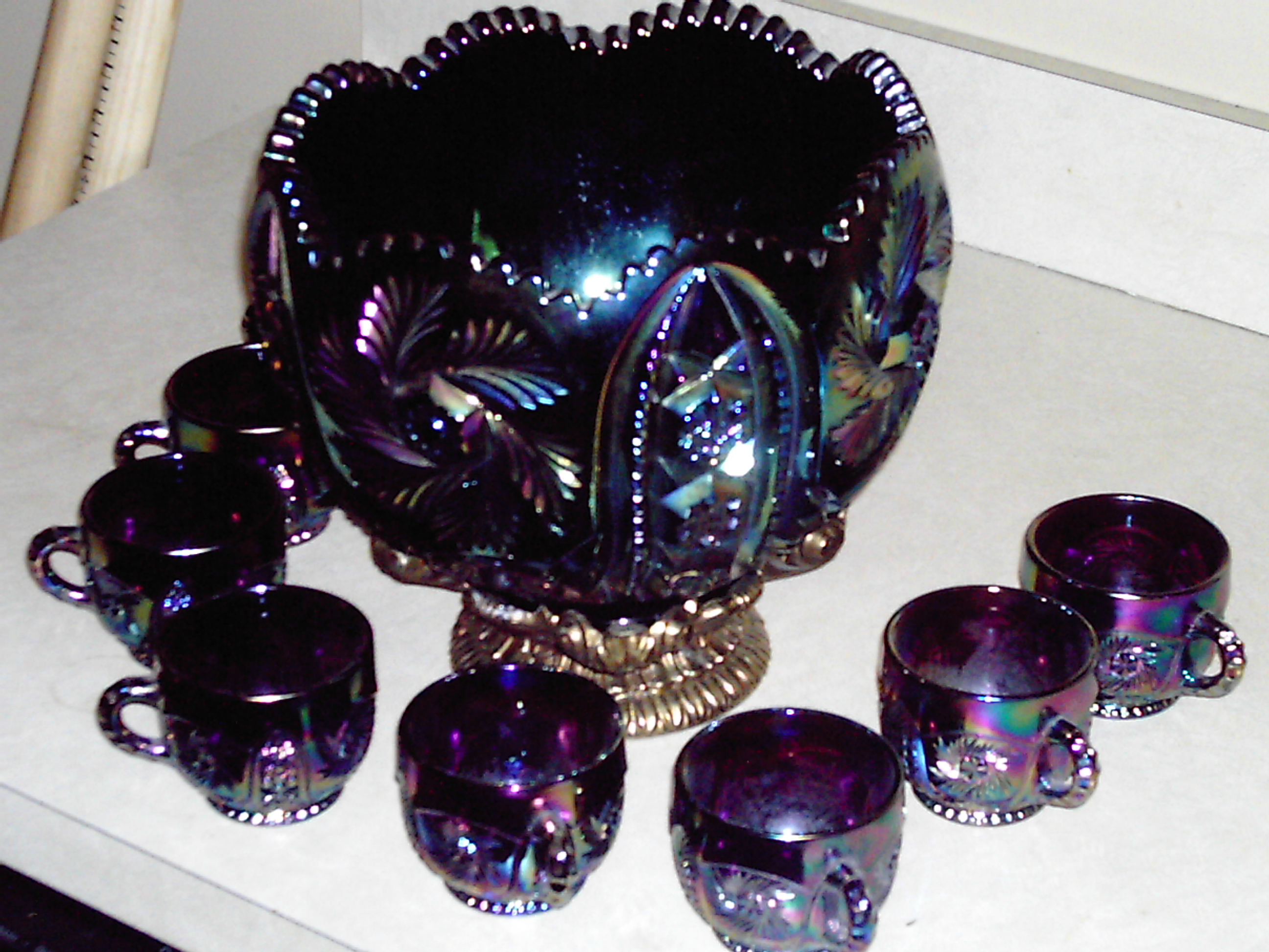 I've been searching to find out what kind of punch bowl set this is and the possible worth. It was my grandfathers and I know it's really old. I've never seen anything like it.
