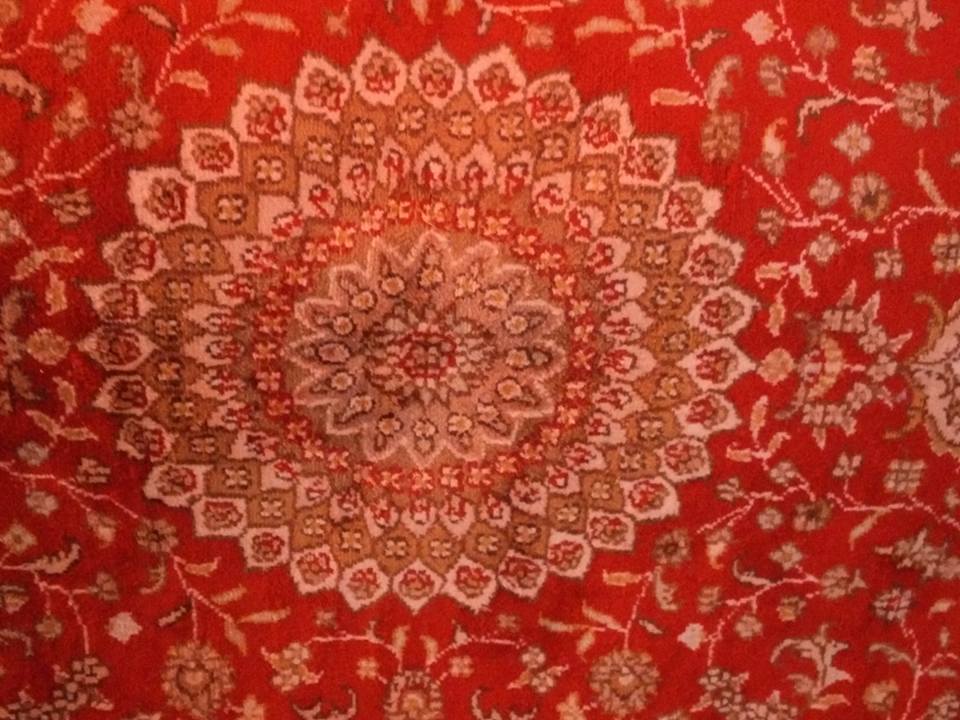 - A nice touch to this rug is the woven-in style-incorporated inscription at the top of the rug translates from Farsi to: "Abbasi Iran" - the inscription is beutifully incorporated into the rug's design. The intensity of the red is not done justice by photos, being that it's impossible to get a perfect photo of a oure silk rug no matter what kind of lighting you use.