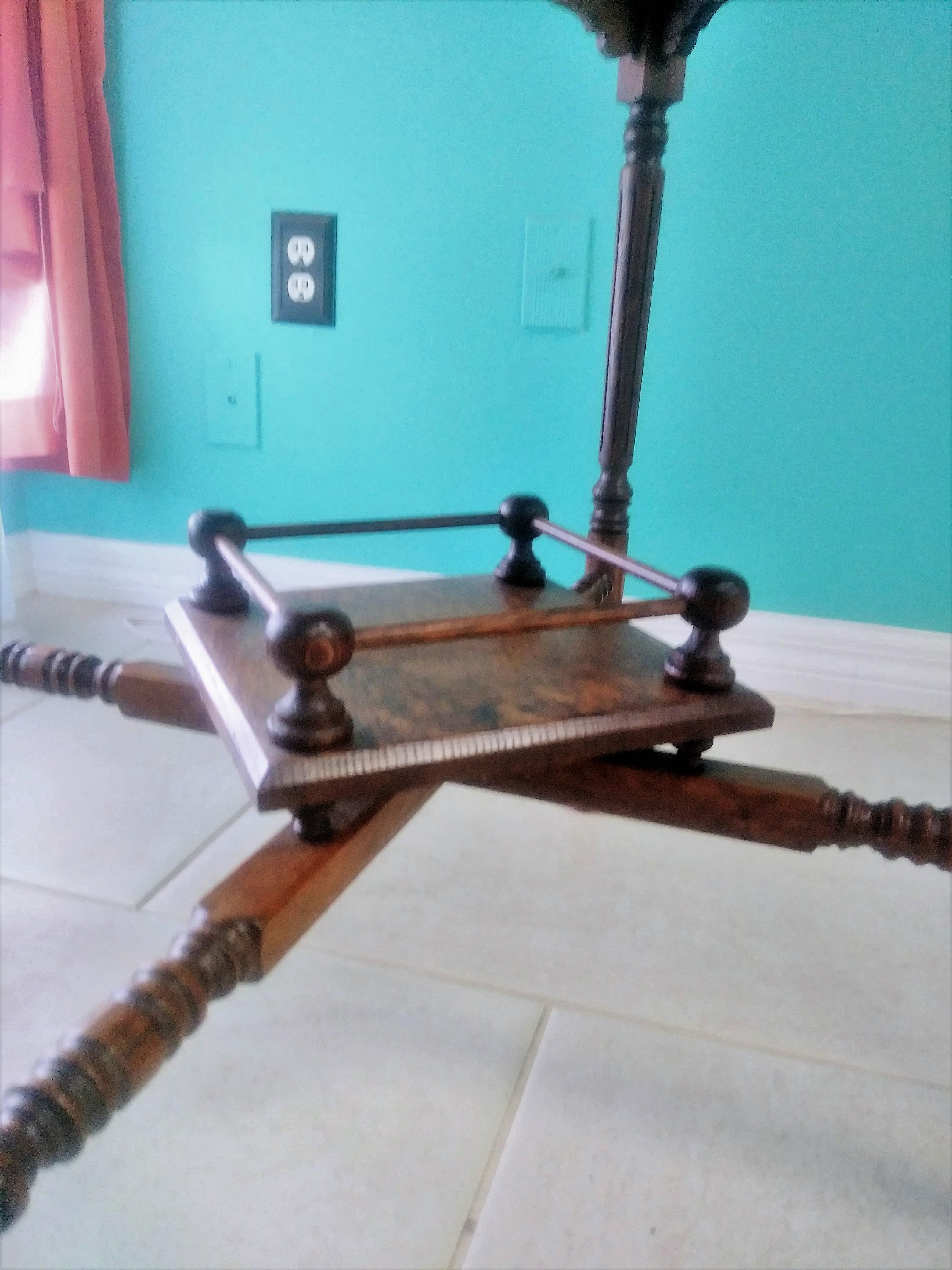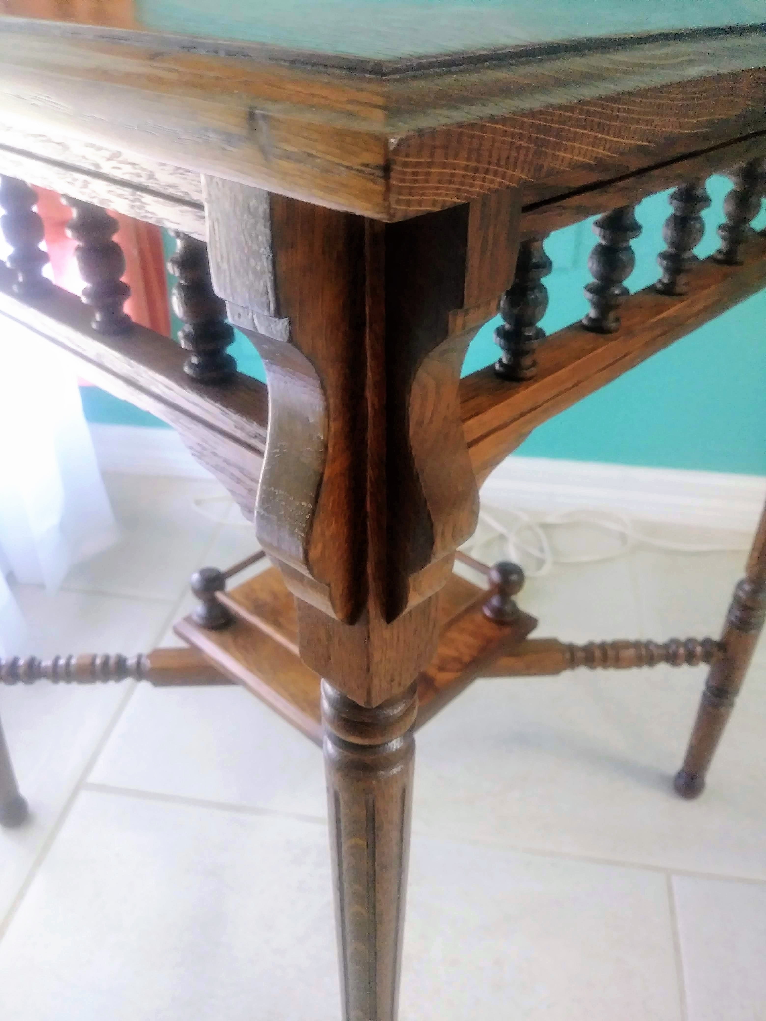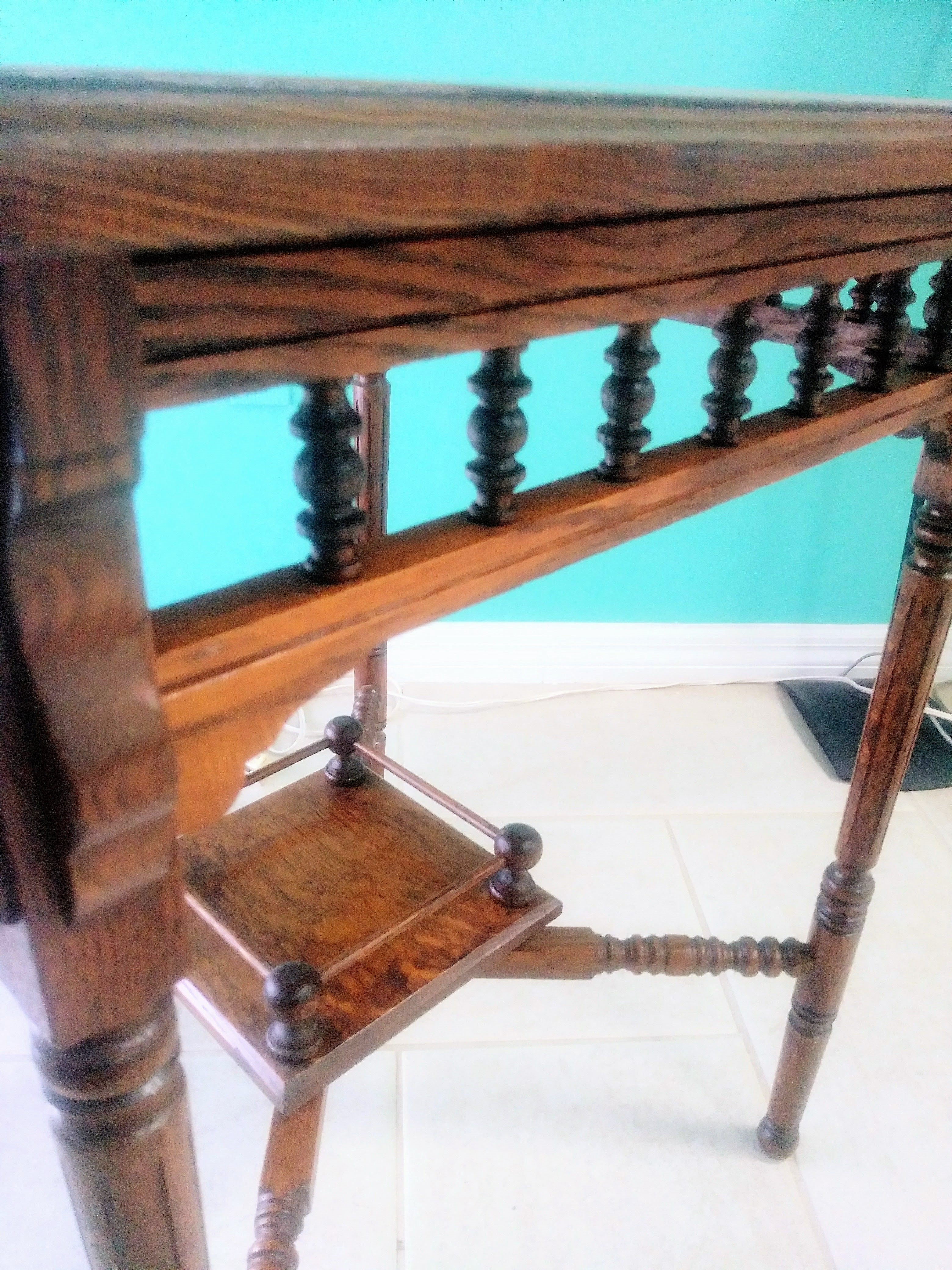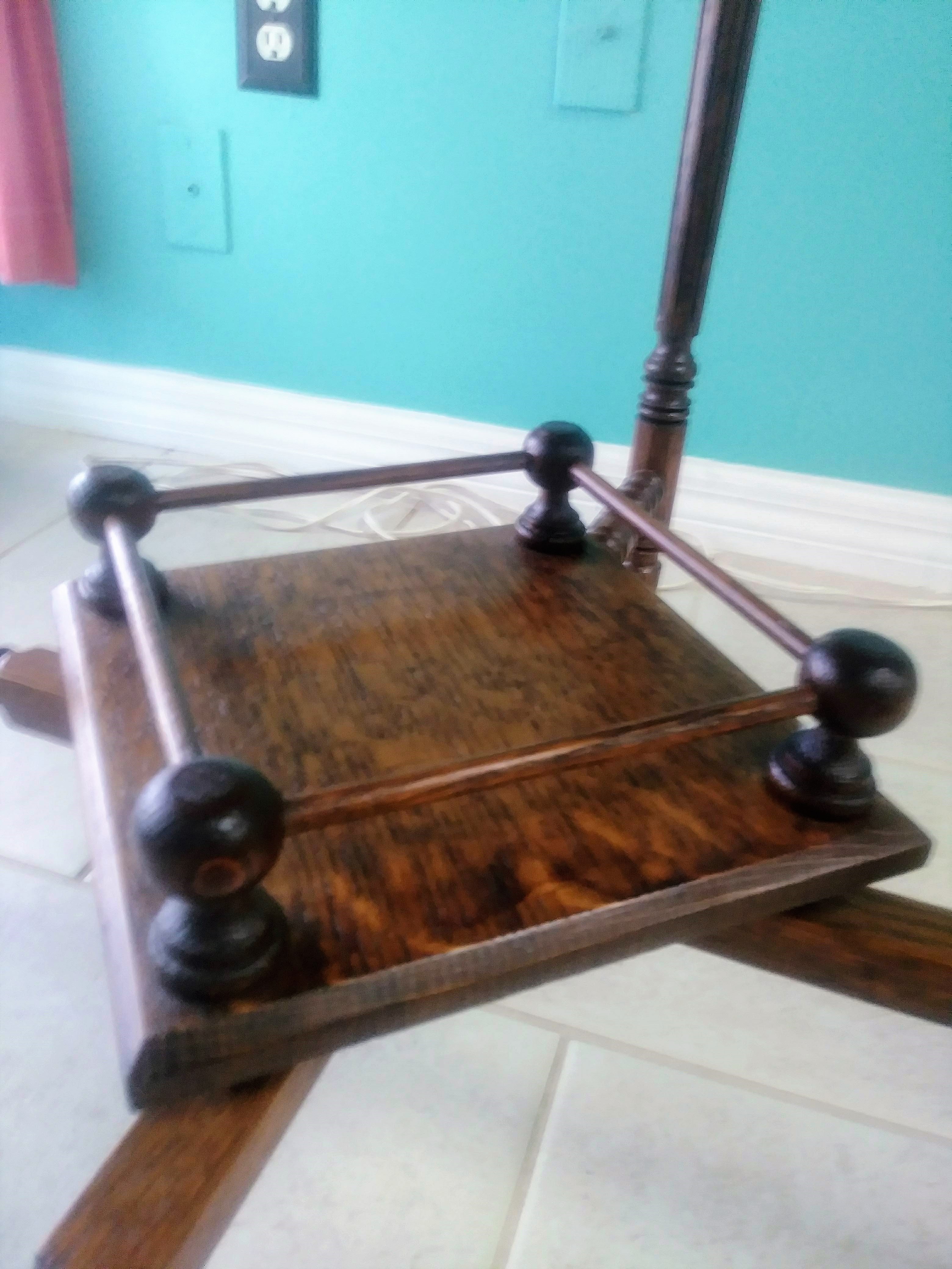 I have this unique square quarter sawn oak table with ball and stick detail on the 2nd tier. I am unable to find another table like it anywhere in my research. The best guess I have is that it is a Victorian lamp or fern table. There are no markings on the table. The only info I have on this table is that it was purchased in the early 1970s at an antique shop in San Francisco, CA. It appears to have been handmade and is in near pristine condition for its age. I would love to know what type of table this is exactly and what its value would be.