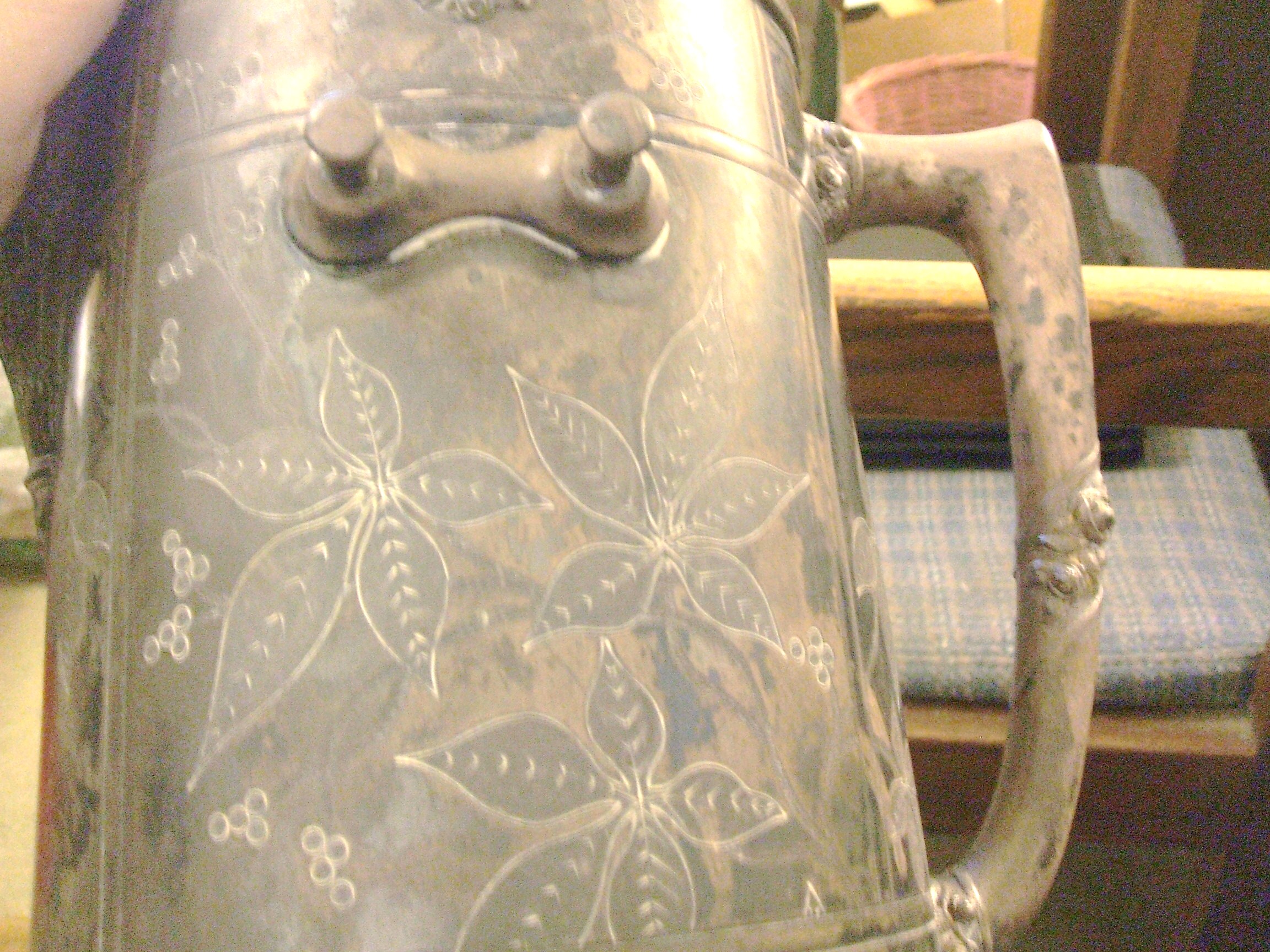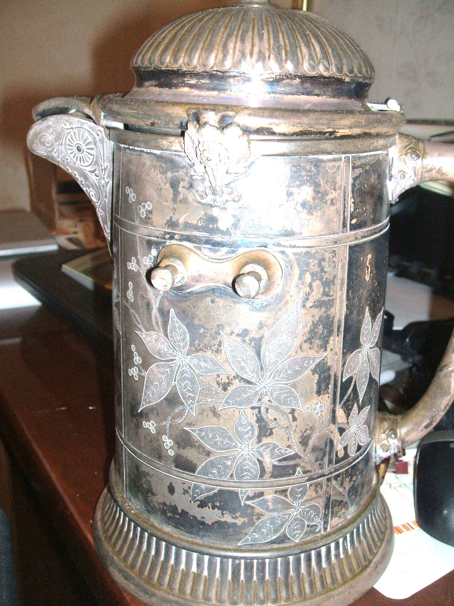 I found this piece in my mothers belongings and I beleive she found this in a antique shop back in the late 50's. The markings are beauiful etchings of flowers. It does look like its been cleaned one time or other which I think might have done some damage to it. It is dirty from sitting around for so many years.